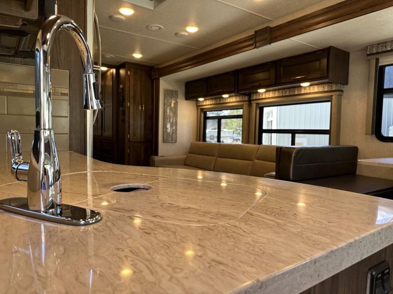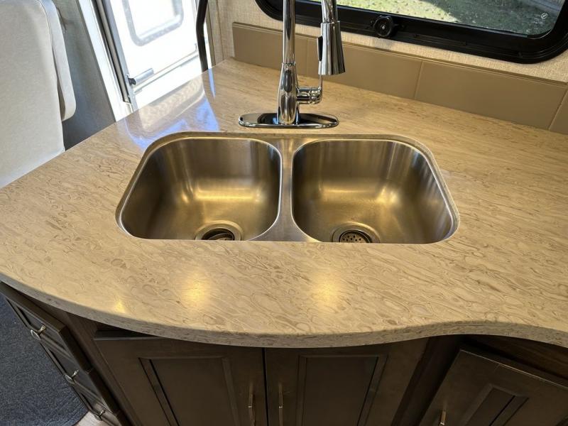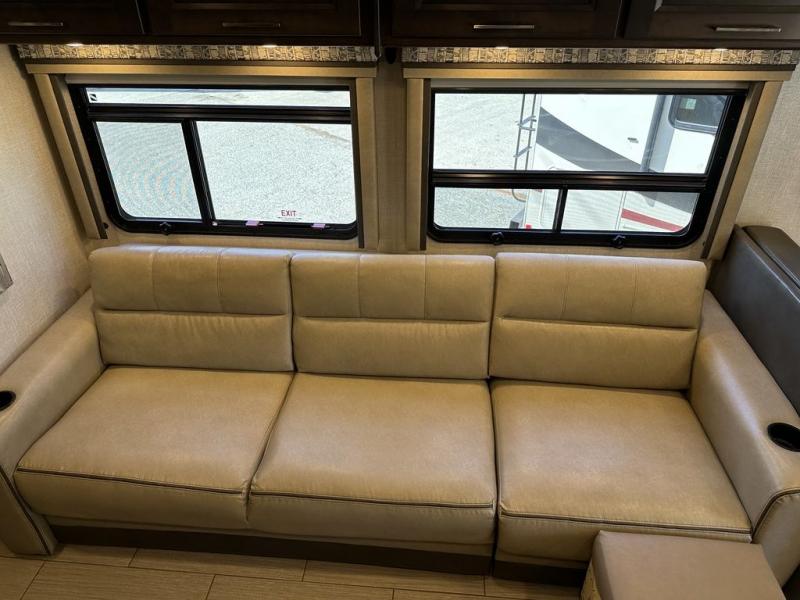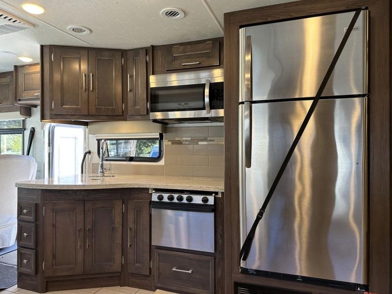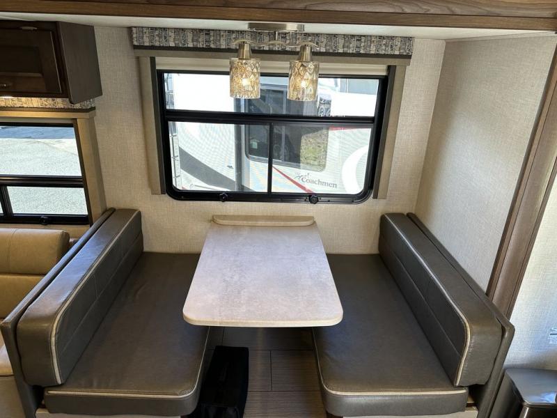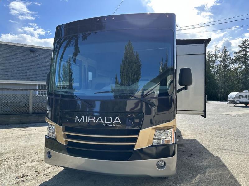Each Coachmen Mirada is made with Azdel composite sidewalls providing strong and lightweight walls for years of enjoyment, an elongated wheelbase which distributes the weight evenly throughout the unit for better handling and a smoother ride, and spacious exterior storage which allows you to bring everything you need. You can also easily navigate with the backup monitor and side cameras. Inside you will find solid surface kitchen countertops for a stylish look, premium linoleum throughout for easy clean up, stainless steel appliances, a Wifi Ranger, solar prep, and much more! Come take a look at a Coachmen RV Mirada class A gas motorhome today!