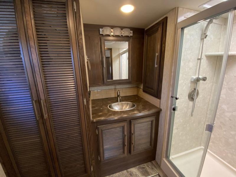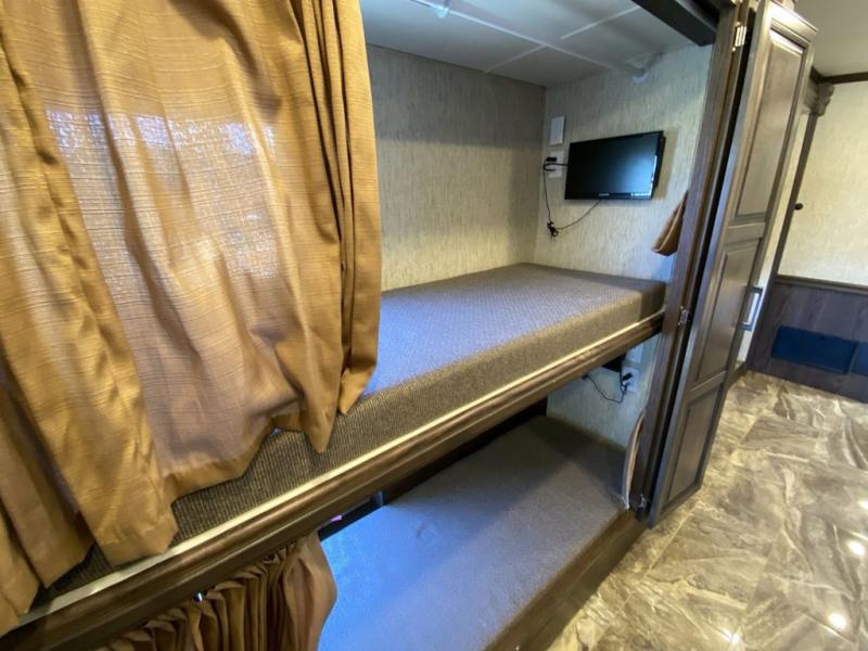 When you are ready to take to the road then do so with this triple slide out, two full bathroom, class A diesel motor home by Coachmen RV. This Sportscoach RD 409BG allows you the ability to arrive at your destination in style, and once you are there you can rest in comfort with all of the inside conveniences. Some of these conveniences include an overhead microwave, an area prepped for a washer and dryer, and three TV's, one of which is outdoors. You can enjoy a good night's rest inside the private bedroom with the comfortable 72" x 80" king size bed, and the kiddos will enjoy sleeping in the bunkhouse with a wardrobe to keep things tidy.
