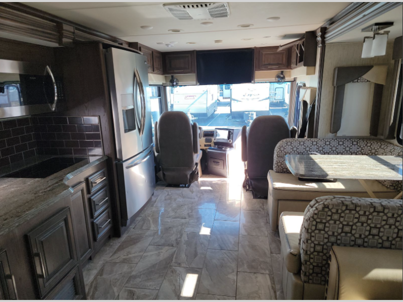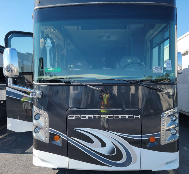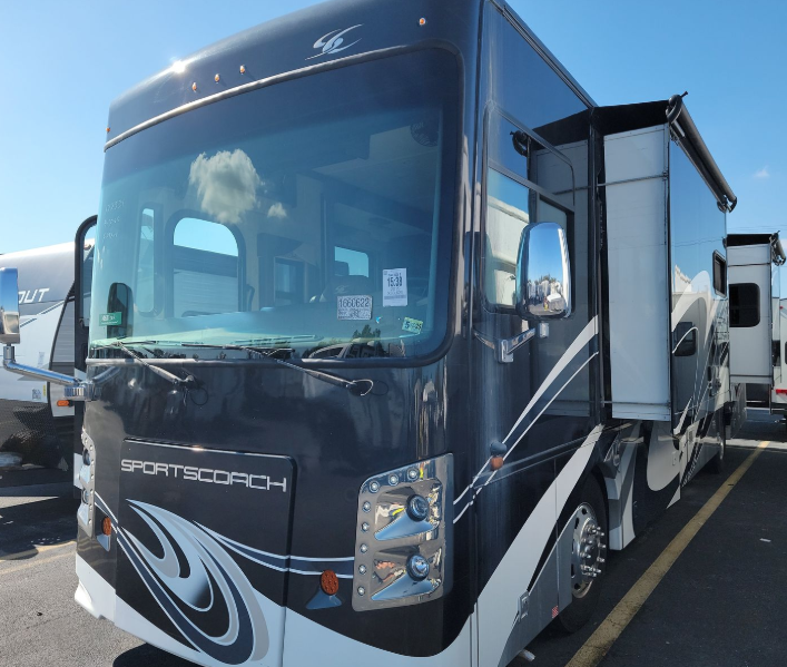 In any Coachmen Sportscoach RD class A diesel, you will find a motorhome with exceptional elegance in design and value at a price that makes it the most affordable rear diesel in the market today! Each model features practical innovations like the true flat floor bedroom design, which eliminates any climbing over the engine just to get in bed, the convenient side opening compartment doors for easier access to your supplies and toys, and the smart design of interior storage such as the overhead compartments, so that you can take what you want. Built on a raised rail Freightliner chassis with chassis air suspension and air brakes, plus features a Cummins rear diesel engine and 6-speed Allison transmission, you are sure to enjoy the panoramic views and handling that only a rear diesel can provide. DLR #886B
