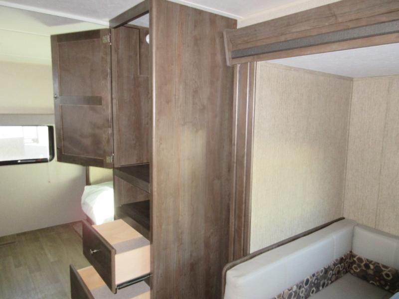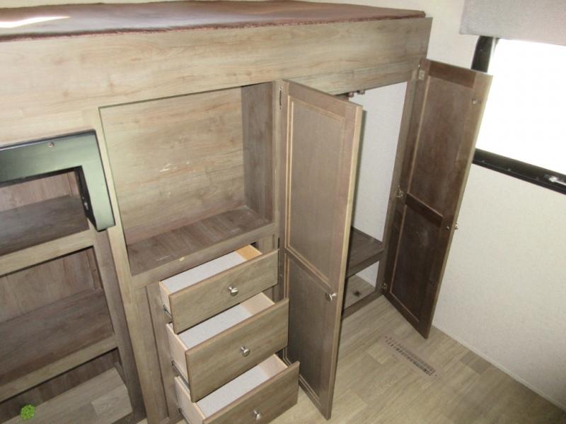 Each Coleman Lantern model by Dutchmen provides amenities and value beyond your imagination. With conveniences such as the thermoformed countertops in the kitchen, a Rest Easy mattress, Everwear luxury furniture, and a solar power charging connection, it is no wonder that the Coleman Lantern is the choice of many outdoor enthusiasts. The under-bed storage is also a fantastic feature because it allows you to keep your belongings safely tucked away and out of sight. The campground awaits you and your family, so get out there in your new Coleman Lantern Series!