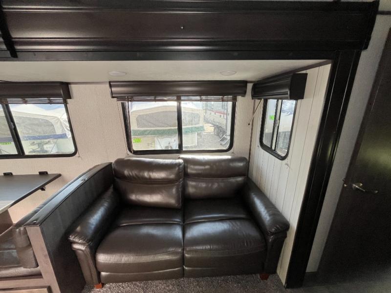 Enjoy every excursion you take with this Sunset Trail Super Lite travel trailer because of the high-class amenities that have been included, like the king-size bed in the front private bedroom. The full kitchen will allow you to camp out wherever you wish to do so by providing all of the tools needed to whip up a hot dinner no matter where you are, like the oven and glass top range, and the kitchen walk-in pantry will easily store all of your favorite goodies and snacks.