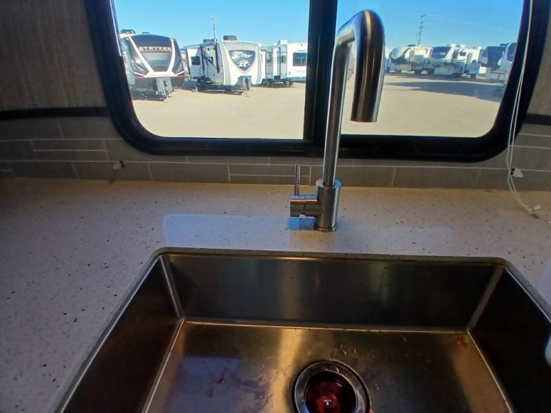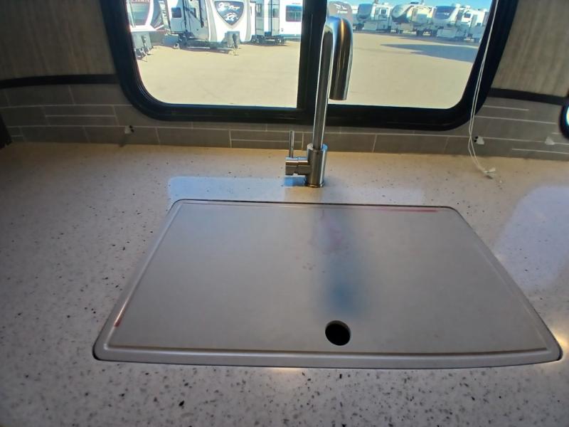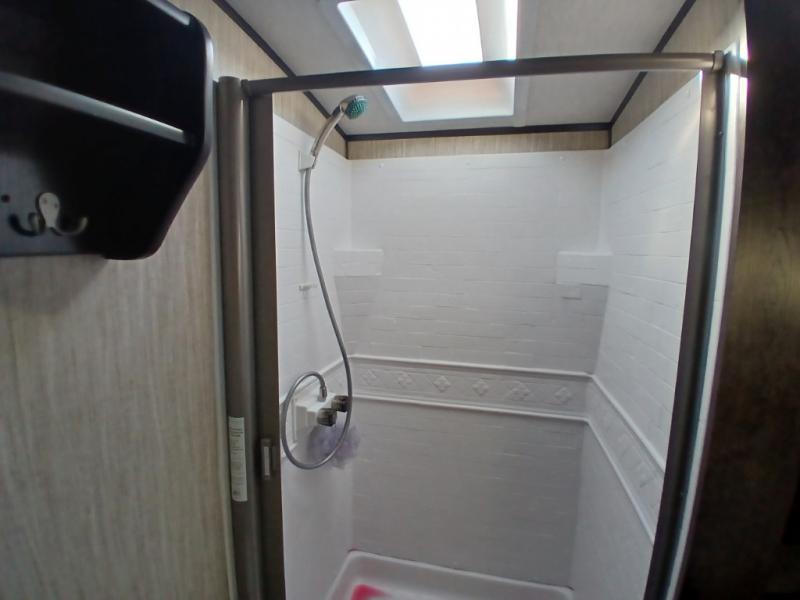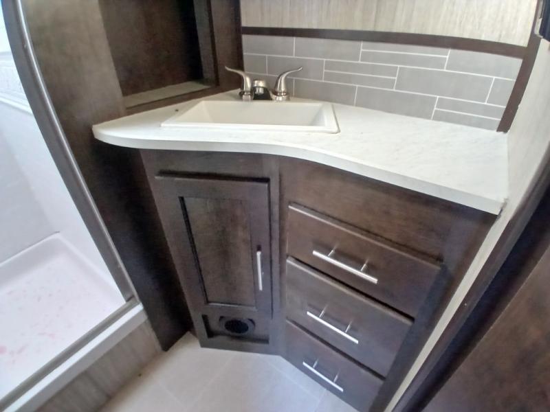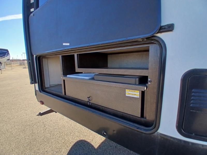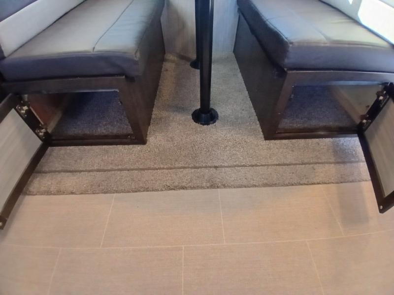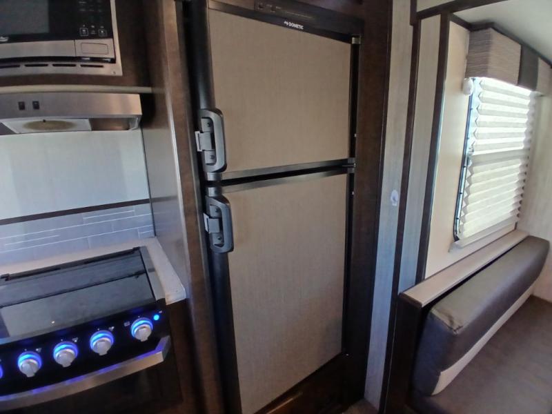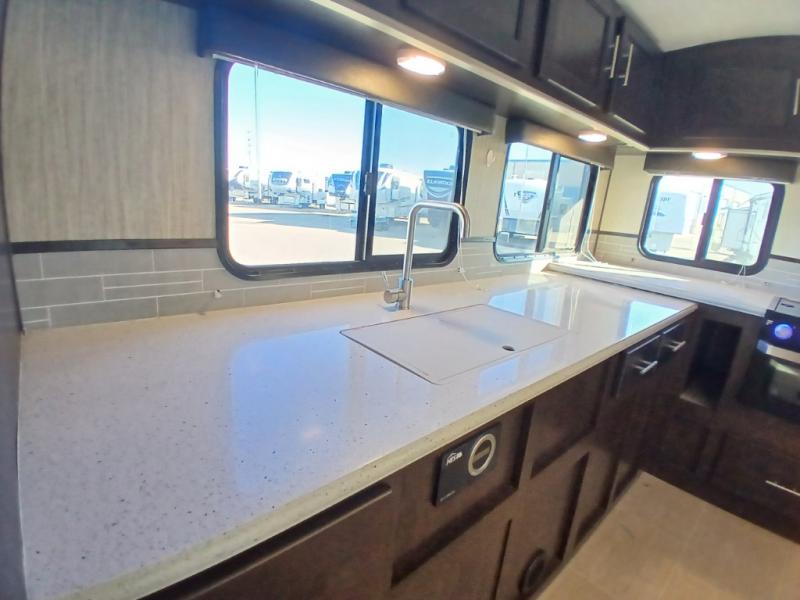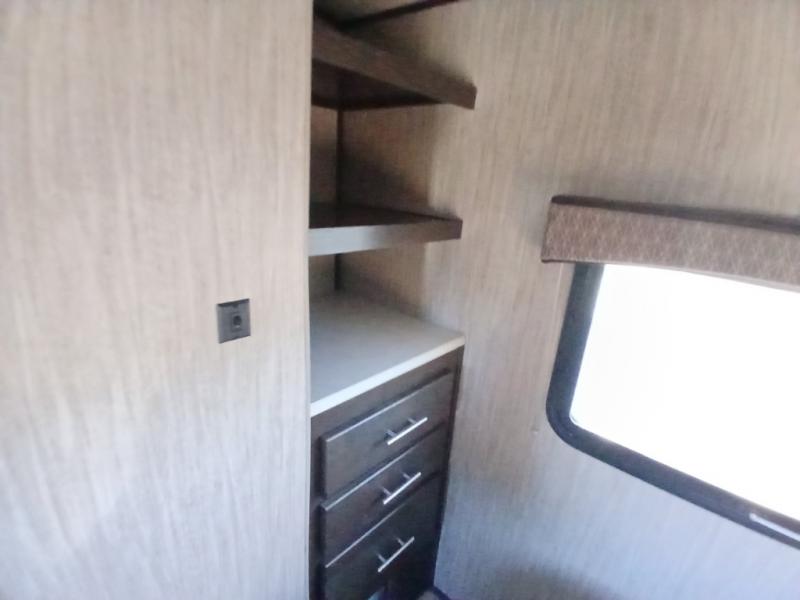 The chef in the family will love this kitchen layout along the rear wall and side wall giving them extra counter space to make their favorite meals and desserts for when guests visit. And the walk-in pantry will allow them to stock up on everything they might need. You will also find it easy to host your family and friends during the day and overnight with the booth dinette and two sofas that have been included in the main living area, and when it is time for bed, nothing will feel better than retreating to your very own queen bed for the night as you slide the space savings door closed.