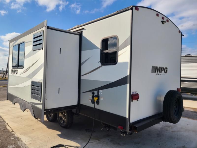 Daydreaming about how many fish you will catch at the state park after sitting around the campfire and getting cleaned up to do it all over again the next day? This MPG travel trailer provides a rear full bathroom with linen storage and extra counter space, plus a front private dual entry bedroom with a king bed for your daytime nap or restful night's sleep. You will surely appreciate the interior floor space in the main living room from the slide out. The dining area is comfortable, and the U-shaped counter in the kitchen area is convenient when making meals. Come see what else you will love about this trailer that you keep daydreaming about!