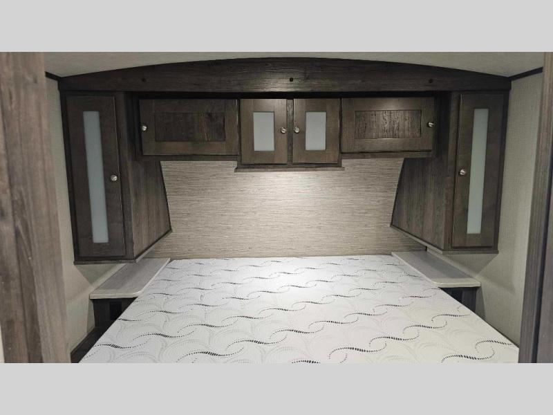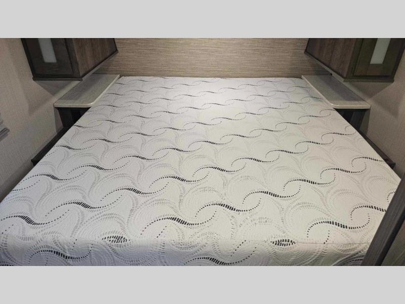With any Crusier MPG travel trailer you will appreciate the 5 sided aluminum constructed travel trailer that is towable by your half-ton truck. The high-gloss fiberglass exterior and front cap will turn heads at any campsite. Inside, you can enjoy the residential-style furniture with top-stitching, the barrel roof, the Shaw carpet with R2X stain-resistance treatment, and the king size bed that makes you feel like you haven't left any comforts back home. It's time to start making memories every mile you travel, come choose your favorite MPG layout today!