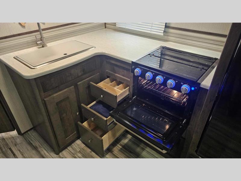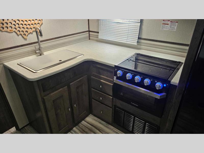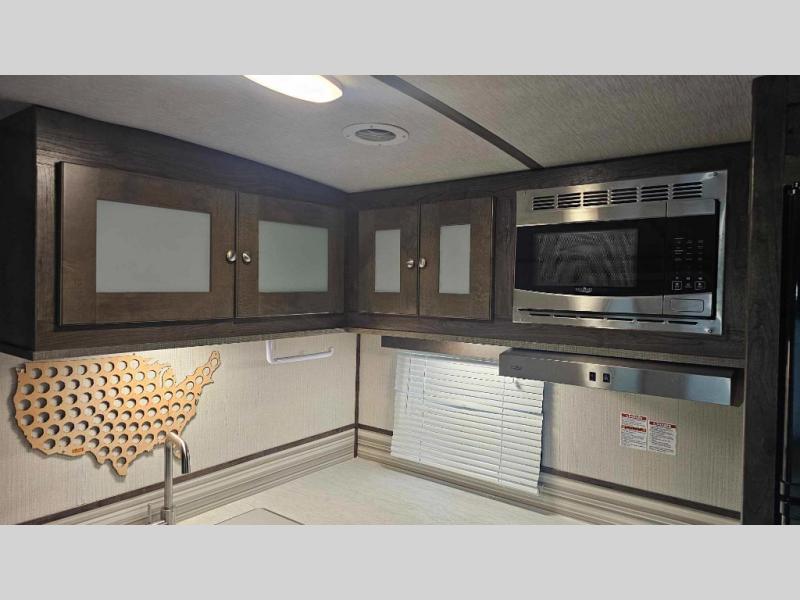 It's time to take your camping experience up a notch with this MPG travel trailer. Beginning with the unit having two full bathrooms, one bath is next to the double size bunks for the kids, and the second walk-through bath is connected to the master bedroom. Everyone will have easy access to both ends of the trailer with dual entry doors, and quick access to the walk-in pantry to grab a snack when headed outside or entering the main living and kitchen area. The cook even has the choice to make meals indoors or outdoors. Just imagine how comfortable you will be with your own bedding, bathroom and kitchen where ever you decide to camp. Take a look today, you will be glad you did!