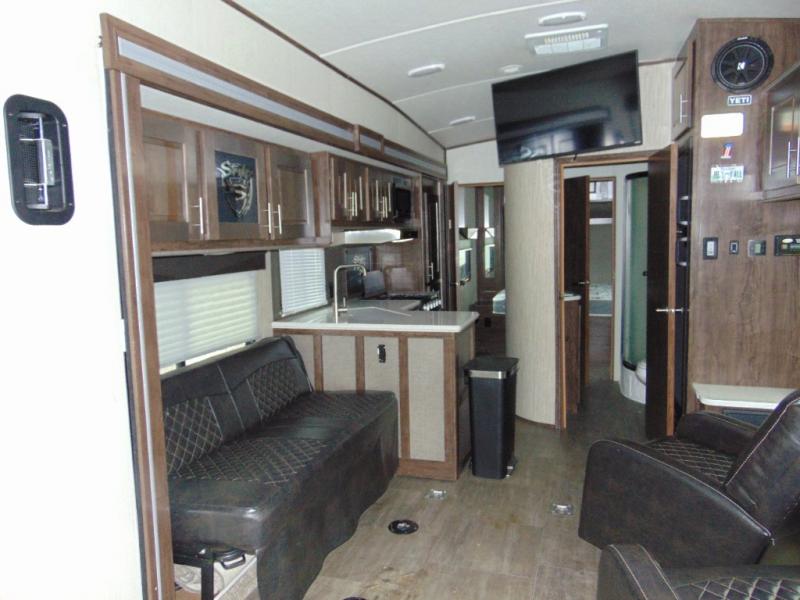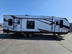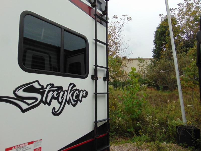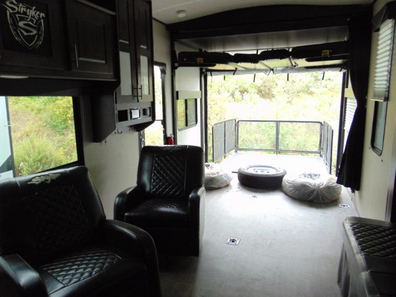 The Stryker toy hauler by Cruiser RV is all about family fun! With its functionality, design, and innovation, the Stryker was created with you in mind, and because the Stryker has a wide-body foundation, you will be able to bring along your biggest off-road toys. With deluxe additions like the residential furniture and designer accent walls, the interior portion of the Stryker is just as breathtaking as the high-gloss premium fiberglass exterior.