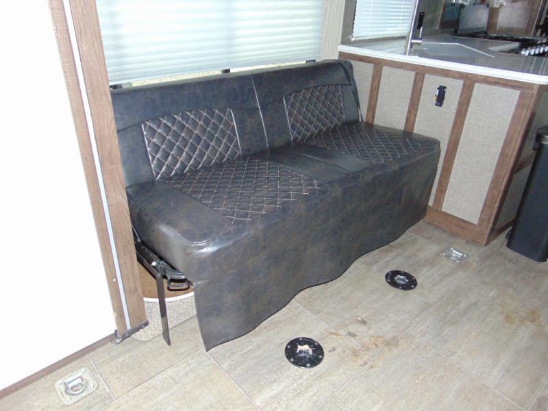 Load up your family, a few off-road toys, and enjoy the weekend of your dreams with this Stryker toy hauler travel trailer by Cruiser RV. This model features plenty of space thanks to the single slide, and the two entry doors give this unit great accessibility. The king-size bed in the private master suite will be a retreat away from the hustle and bustle in the central living area. There are two opposing sofas and an electric queen-size bunk in the garage area that can be transformed into additional sleeping space for extra family or friends that have joined you.