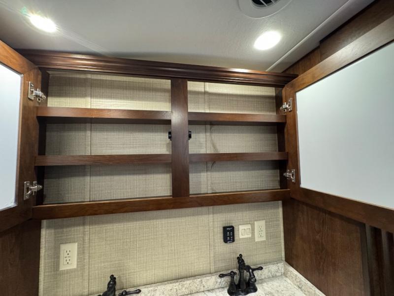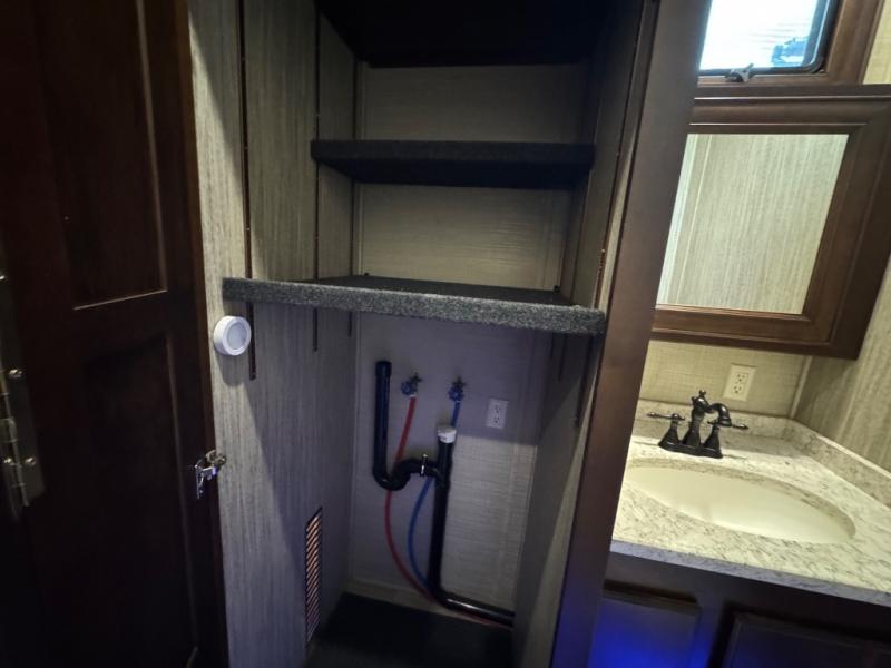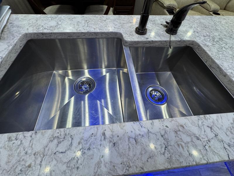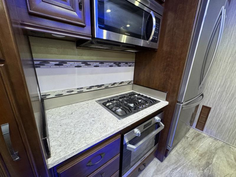 In any DRV Luxury Suites Elite Suites, you will find a fifth wheel that stands tall. By creating an industry-first full fiberglass exterior, they have shown their attention to detail with not only a quality built exterior, but also the interior design with the professionally stained hardwood cabinetry, the high polished quartz countertops, and the hand-laid custom flooring. Setting up will be easier than ever with the 6-jack level-up system which provides quick and easy leveling with the strength to stabilize the coach. They are also built with an eco-friendly, formaldehyde free, high-density wool R-16 residential insulation completely surrounding all of the walls and slides, making it the best in its industry. You will also love the kitchen's interior design with its stainless steel appliances like the convection/microwave, the residential dishwasher, and the 20 cu. ft. French door refrigerator. When you choose one of these DRV Luxury Suites Elite Suites, you will have a fifth wheel that is sure to turn heads, right down to the coordinating window silks and crown molding throughout. So, come choose the one that best suits you!