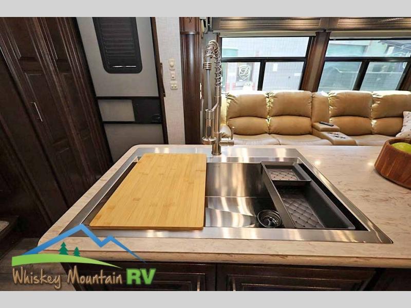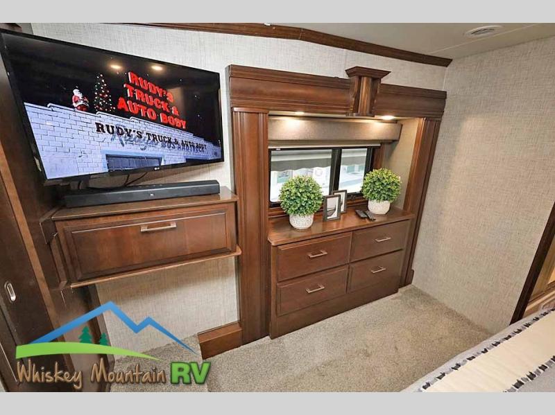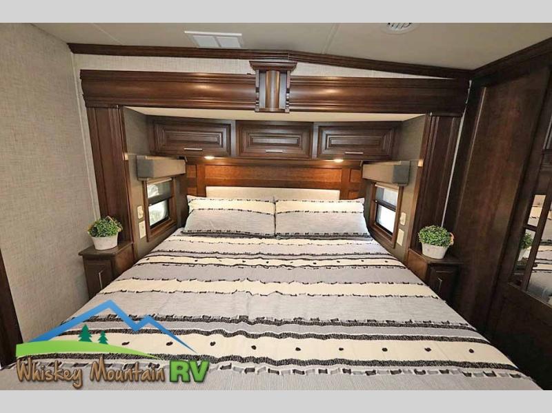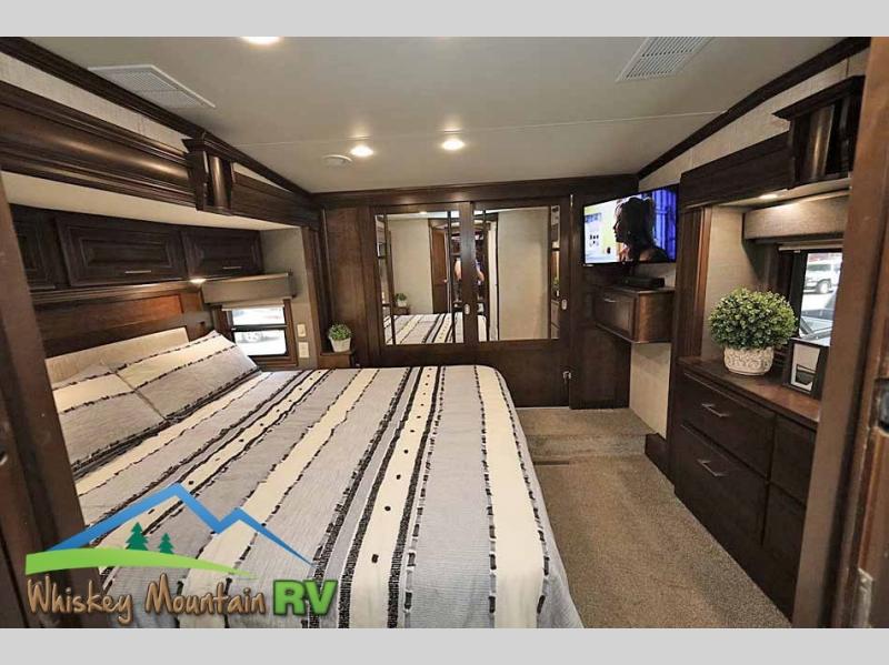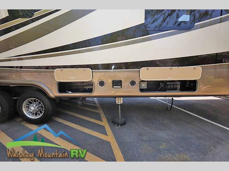 THE EXTERIOR COLOR IS DRV'S MONTICELLO MOUNTAINTOP PARTIAL PAINT PACKAGE WITH FULL BODY CLEAR COAT. THE EXTERIOR APPEARANCE IS QUITE EXTRAORDINARY. THE INTERIOR COLOR SCHEME IS REGENCY WITH MOCHA CHERRY HARDWOOD CABINETRY. A COPY OF THE ORIGINAL MSRP SHEET FOR JUST OVER $174,000 IS INCLUDED IN THE PICTURE SECTION.