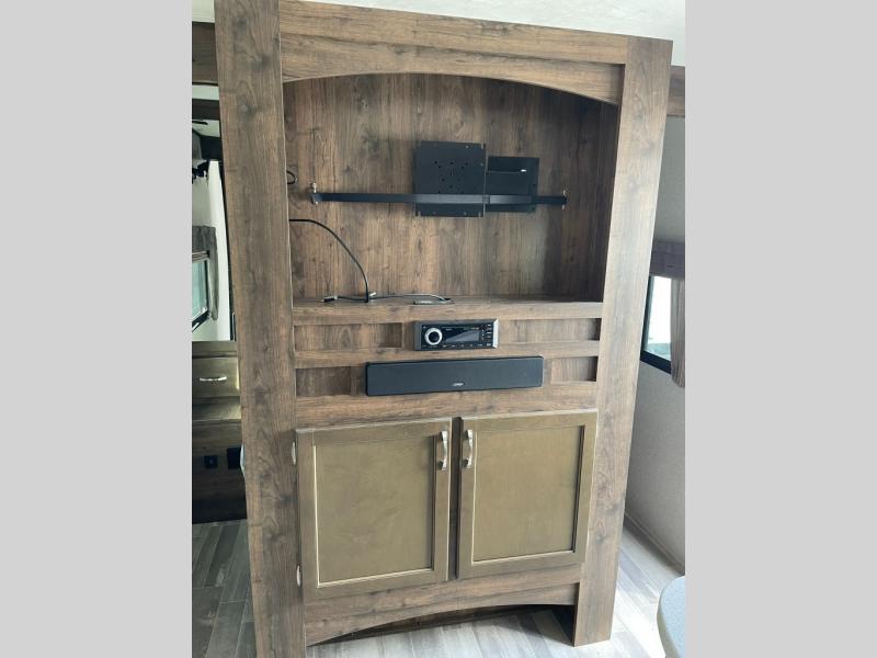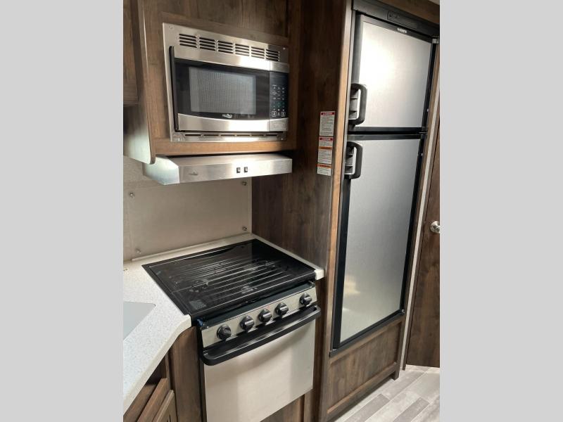 With the Dutchmen Aerolite travel trailer, you will always find exceptional interior comforts, like the 6' 10" ceiling height that delivers a residential feel, the stainless steel appliances, and the LED lighting throughout. The family will enjoy listening to the superb quality coming from the Jensen soundbar, and you will be thoroughly impressed by the iN-Command control system that allows you to monitor and change various electrical functions throughout the Aerolite with the ease of your smart phone. And the Industry-Best 3-year limited structural warranty that comes with each Aerolite allows you to enjoy your travel trailer for years to come!