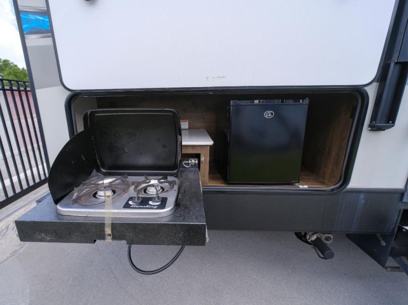 Your search is over! You have found the RV of your dreams with this Aerolite travel trailer! With sleeping space for nine, a front private bedroom, and an outdoor kitchen, this unit has everything you could possibly need for exciting adventures with the family. You will also appreciate having a spectacular living area in which to gather with the family at the end of the night as you watch a movie together on the LED HDTV or simply enjoy the soft crackles coming from the fireplace.