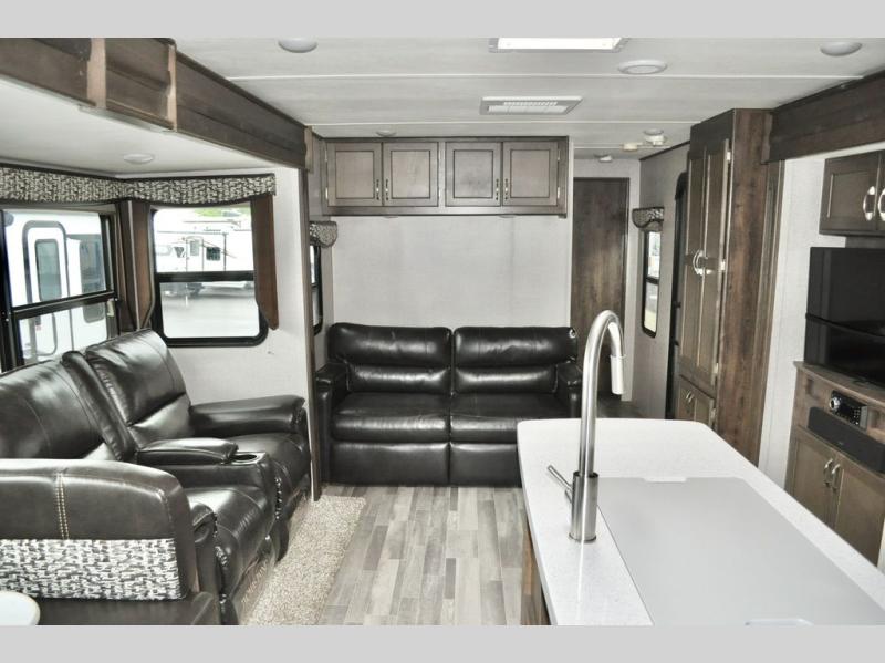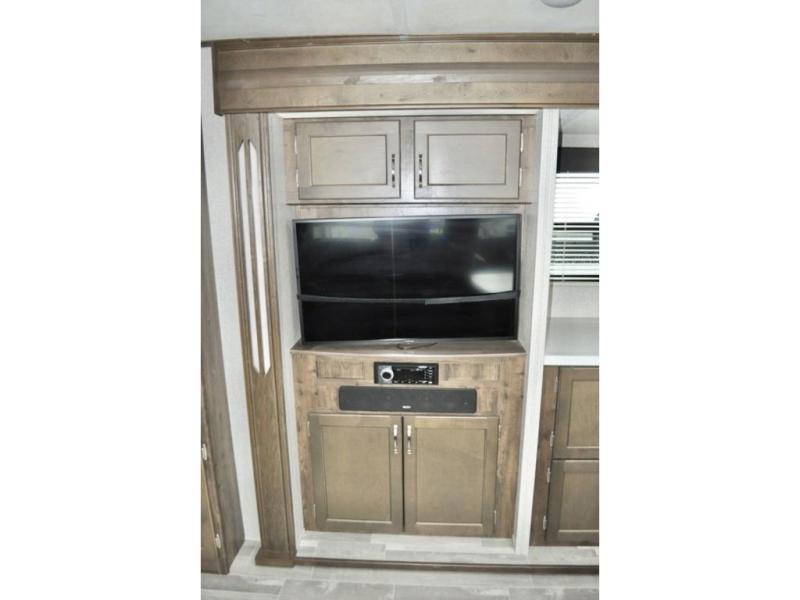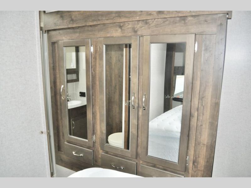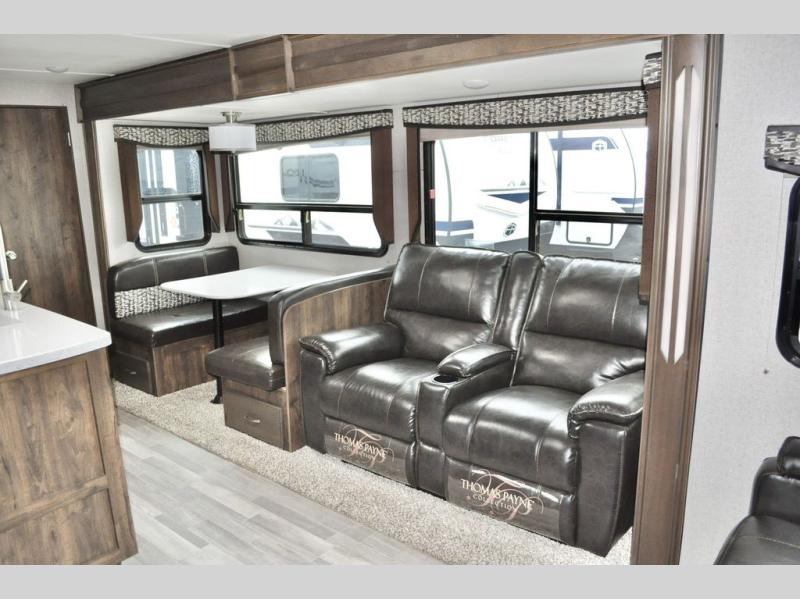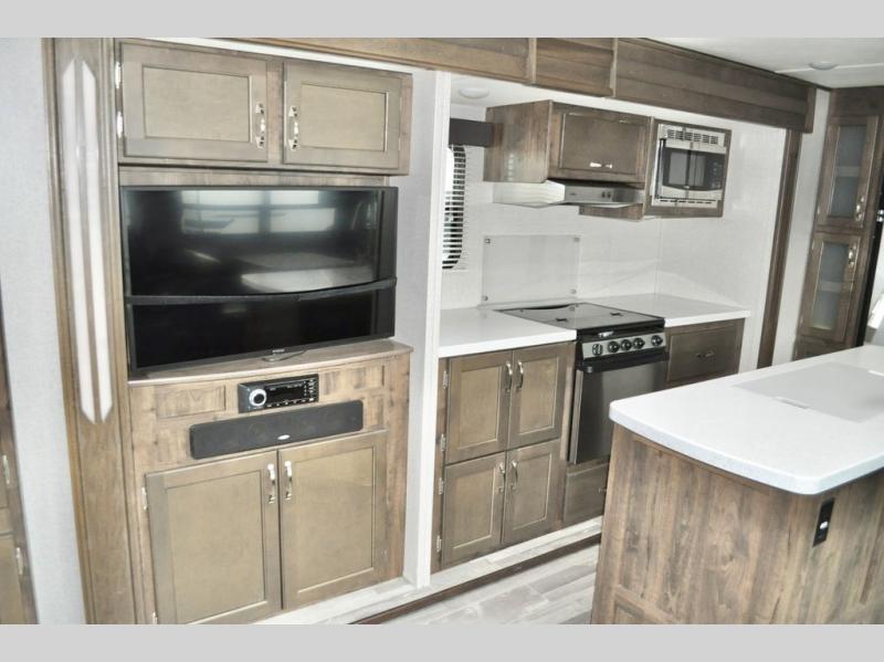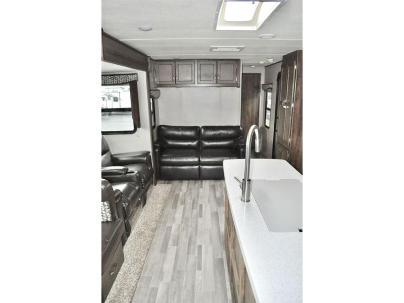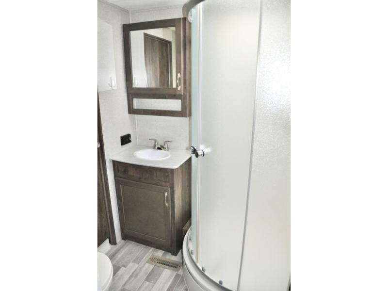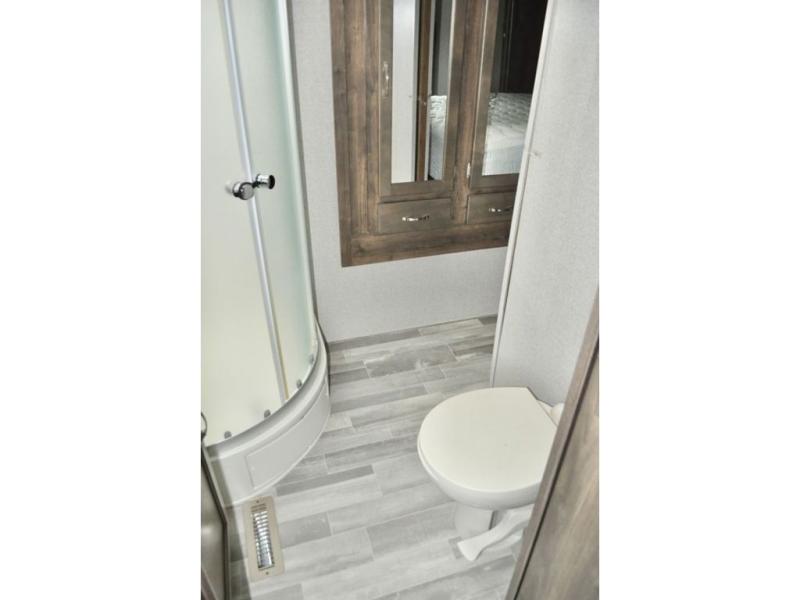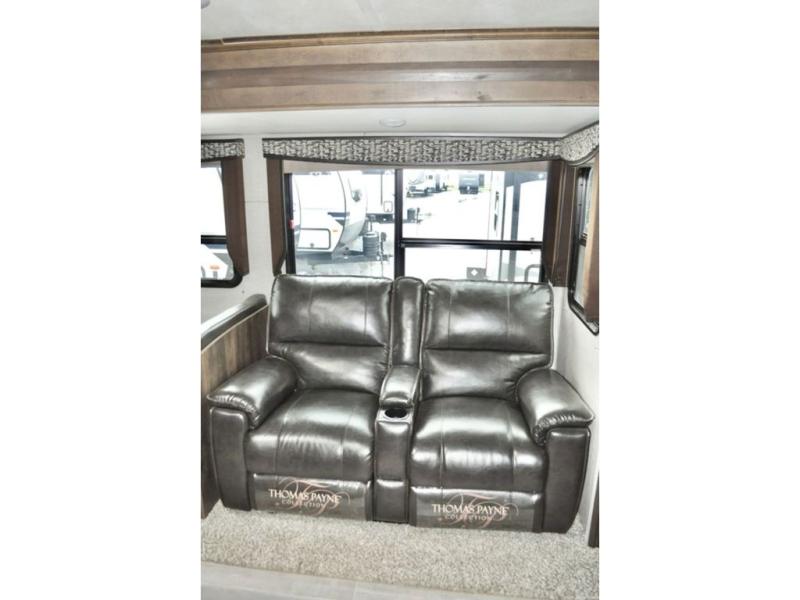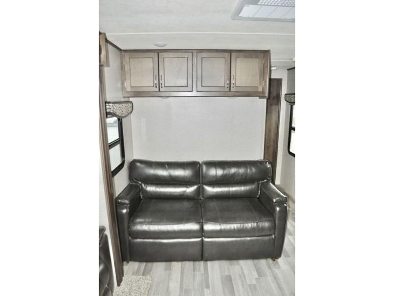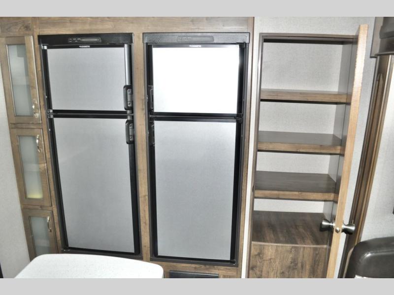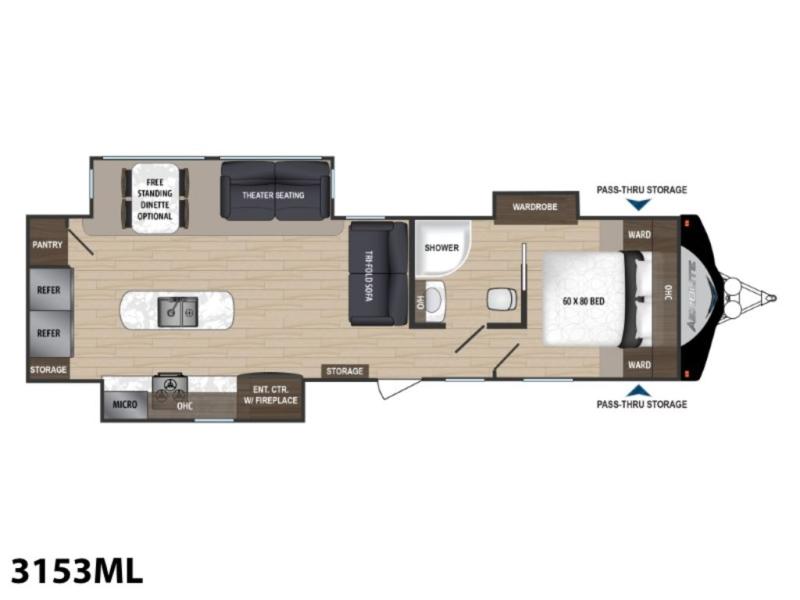 If you have been thinking about getting a travel trailer for years but just haven't found the one that will meet your needs, it's time to take a look at this Aerolite travel trailer. This model gives you everything you need for a successful and comfortable getaway, like the master suite with a wardrobe slide, the large kitchen with two refrigerators, and the dual-entry bath with a radius shower. You will also enjoy spending each of your evenings curled up on the theater seating or tri-fold sofa while you snack on some popcorn and watch a movie with the family on the LED HDTV.
