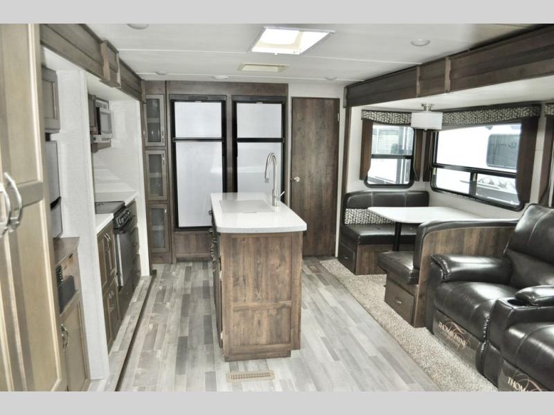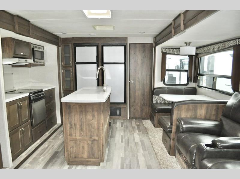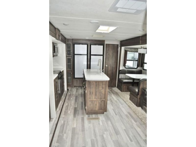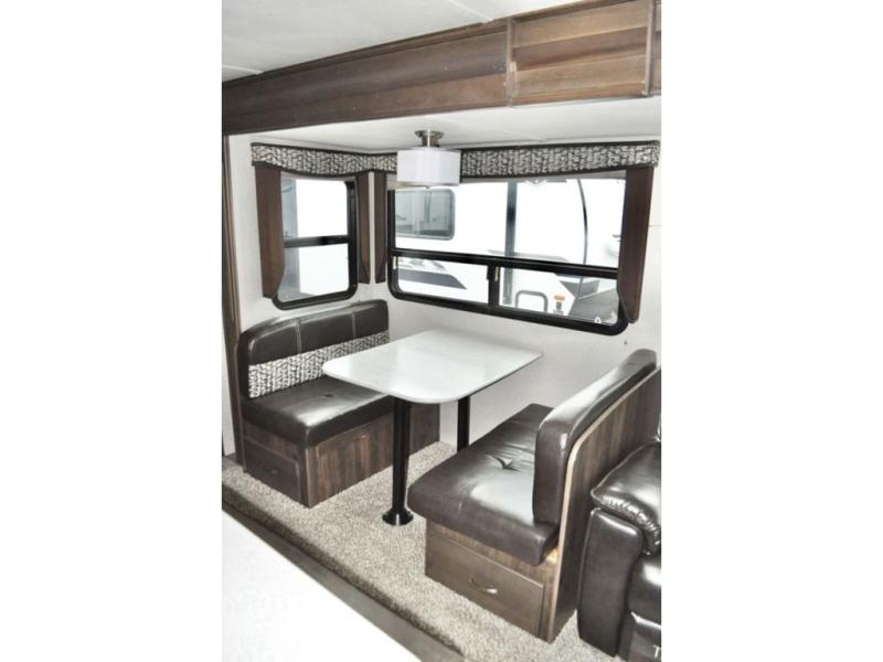 With the Dutchmen Aerolite travel trailer, you will always find exceptional interior comforts, like the 6' 10" ceiling height that delivers a residential feel, the stainless steel appliances, and the LED lighting throughout. The family will enjoy listening to the superb quality coming from the Jensen soundbar, and you will be thoroughly impressed by the iN-Command control system that allows you to monitor and change various electrical functions throughout the Aerolite with the ease of your smart phone. And the Industry-Best 3-year limited structural warranty that comes with each Aerolite allows you to enjoy your travel trailer for years to come!