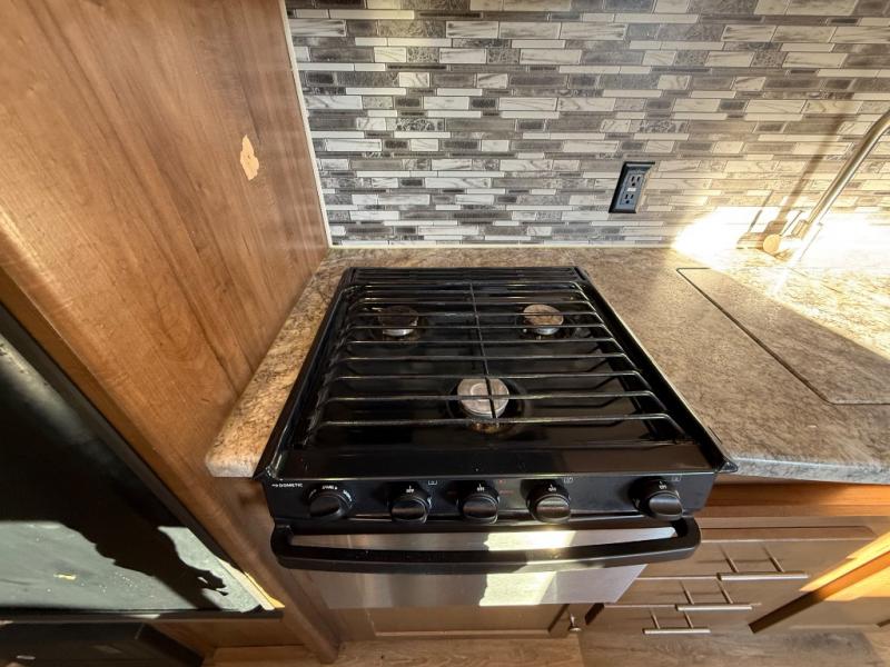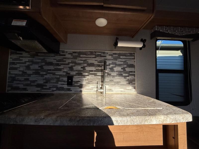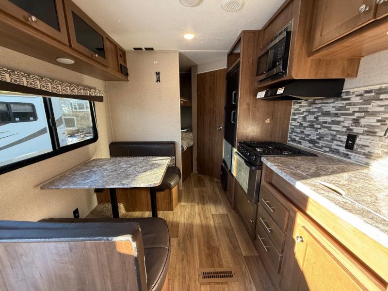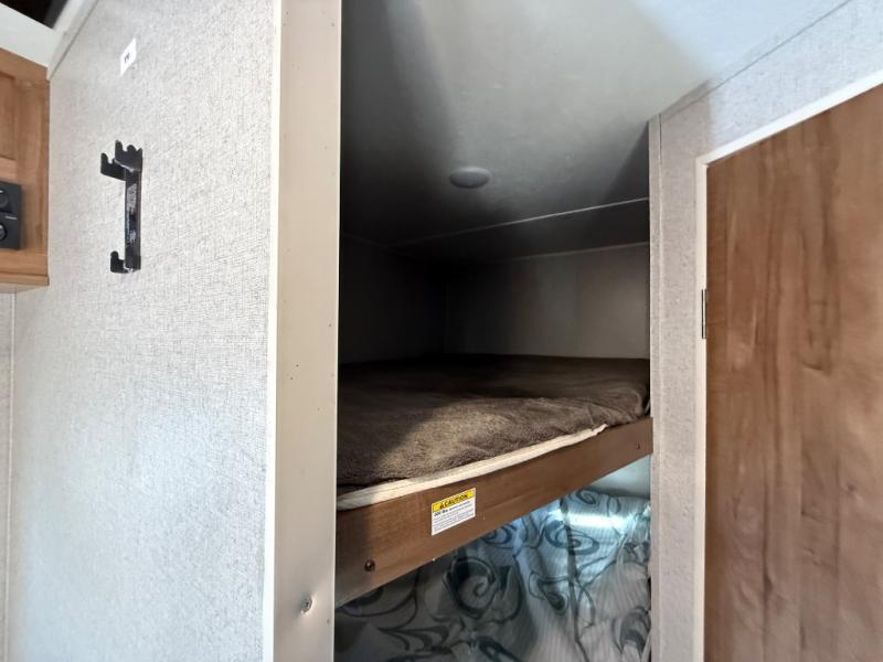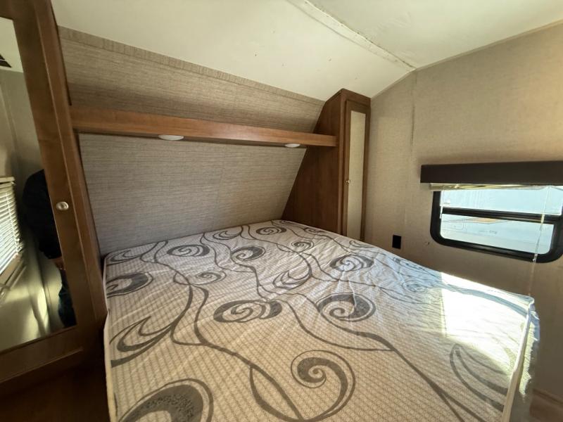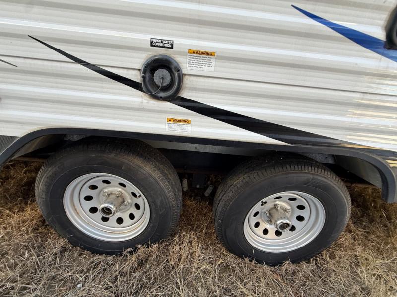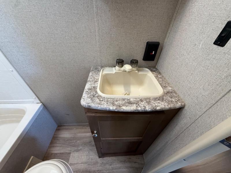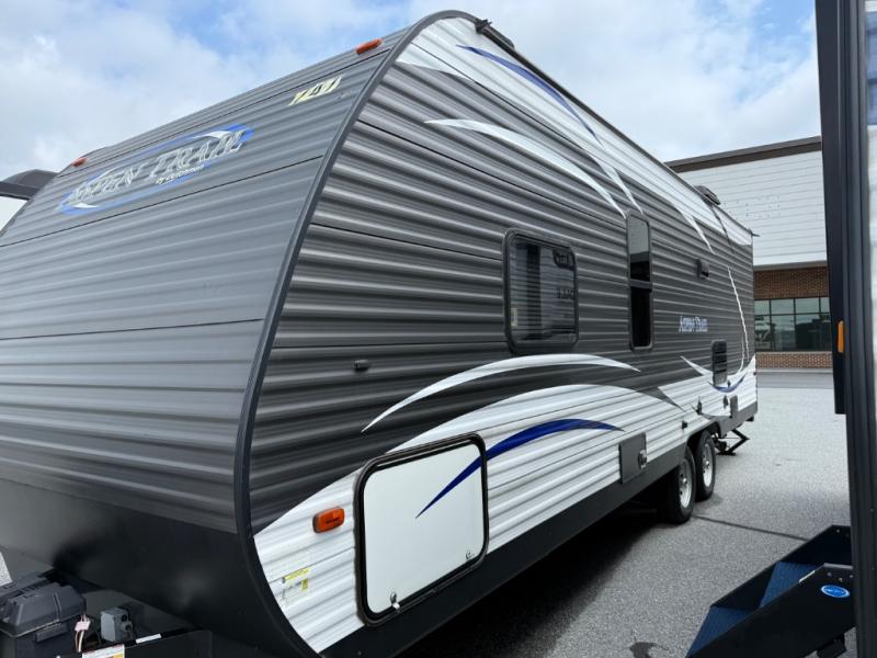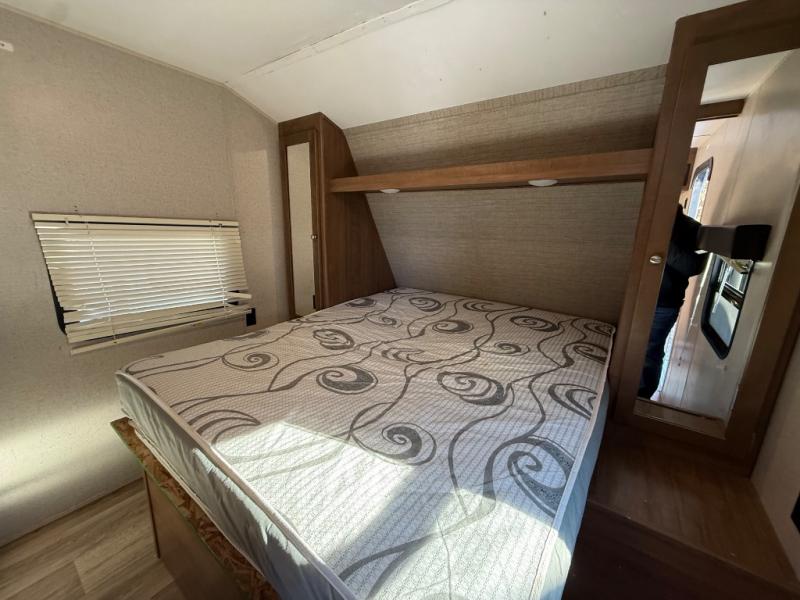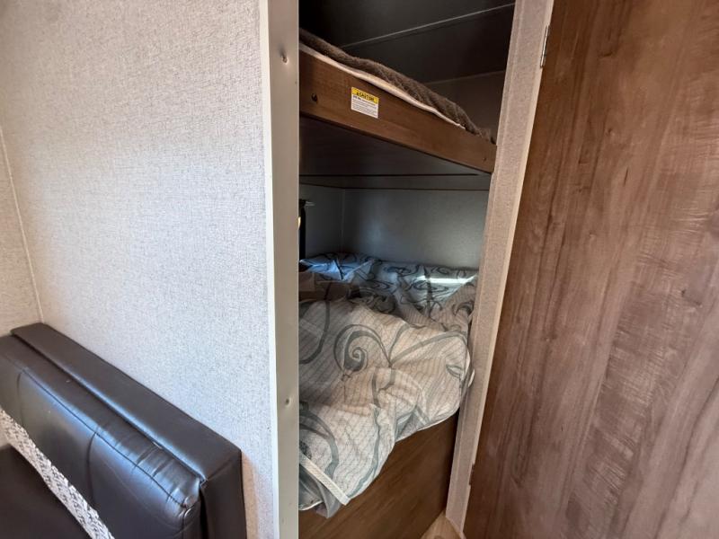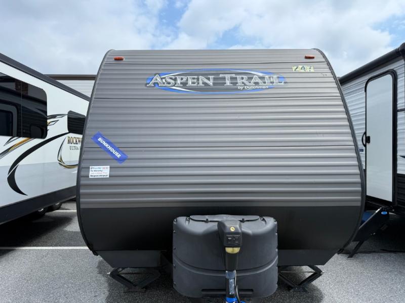 As is , soft floor . Thinking about finding the perfect family RV? This Aspen Trail travel trailer might just complete the "must have" list to make everyone happy and comfortable! The kids will have the choice to sleep on the double-size bunk beds with a privacy curtain or the booth dinette and sofa once folded down for the evening, and you and your spouse will have a master bedroom all to yourselves. The kitchen appliances, like the microwave and three-burner range, allow you to make meals and snacks to keep everyone fueled for the family hike each day, and you have a full bathroom with a shower and skylight for everyone to get cleaned up before dinner and bedtime.
