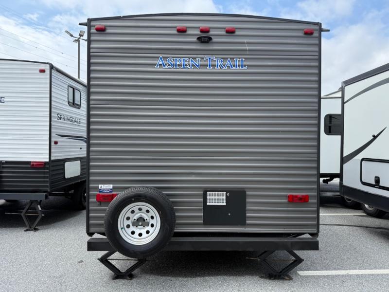 With each Aspen Trail travel trailer by Dutchmen RV, you can travel during any season thanks to the heated and enclosed underbelly, and you will find the mega exterior pass-through storage quite handy for your larger items, such as lawn chairs, a hammock, and campfire grilling utensils. The interior luxuries, such as the Everdream mattress, high-output furnace, and 82" ceiling height, are sure to impress, and the two exterior speakers give you the perfect reason to gather outside underneath the awning with friends.