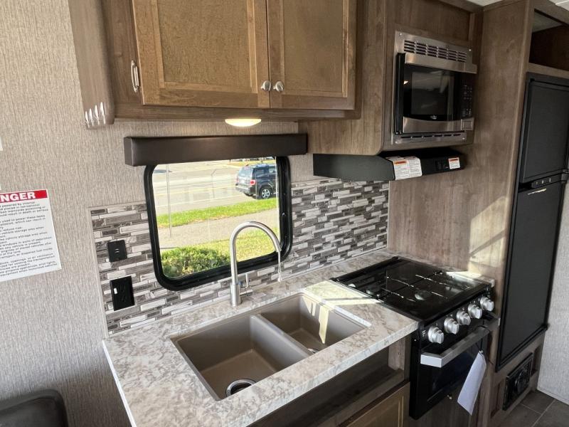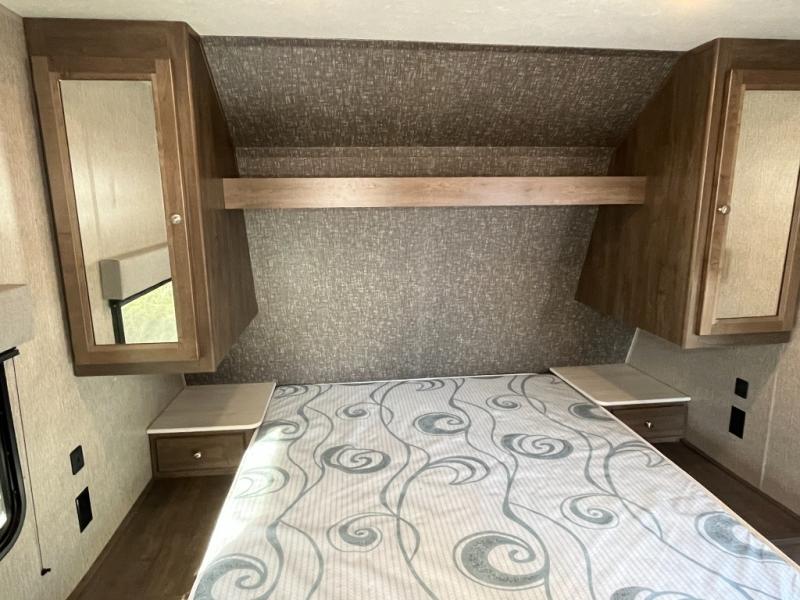 Each Coleman Lantern model by Dutchmen provides amenities and value beyond your imagination. With conveniences such as the thermoformed countertops in the kitchen, a Rest Easy mattress, Everwear luxury furniture, and a solar power charging connection, it is no wonder that the Coleman Lantern is the choice of many outdoor enthusiasts. The under-bed storage is also a fantastic feature because it allows you to keep your belongings safely tucked away and out of sight. The campground awaits you and your family, so get out there in your new Coleman Lantern Series!