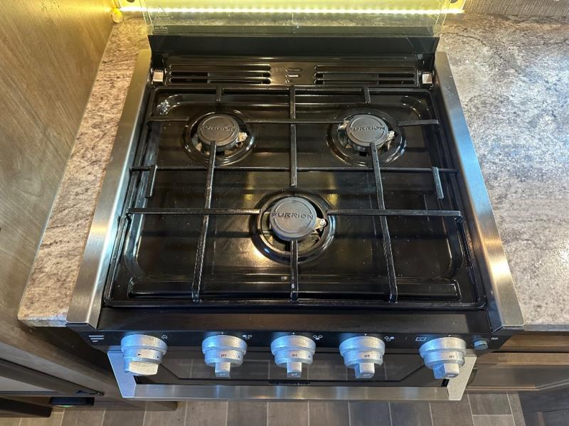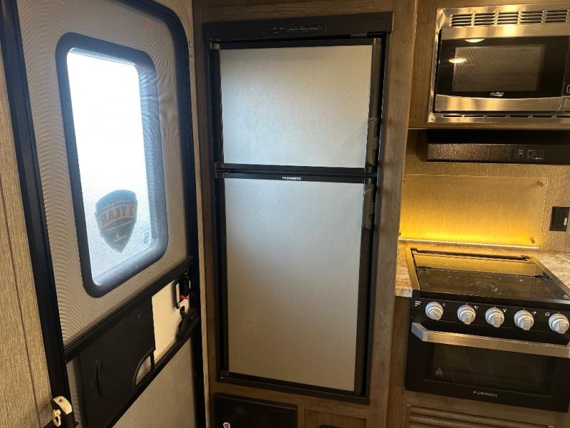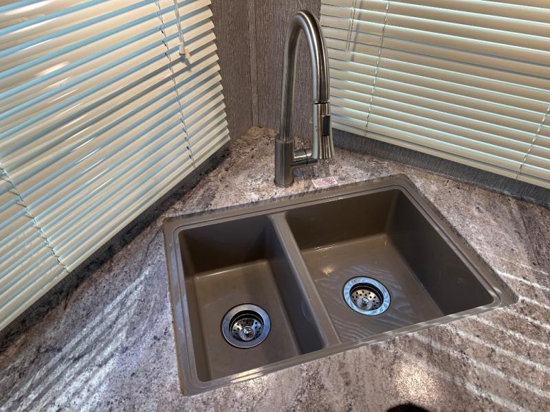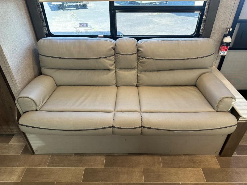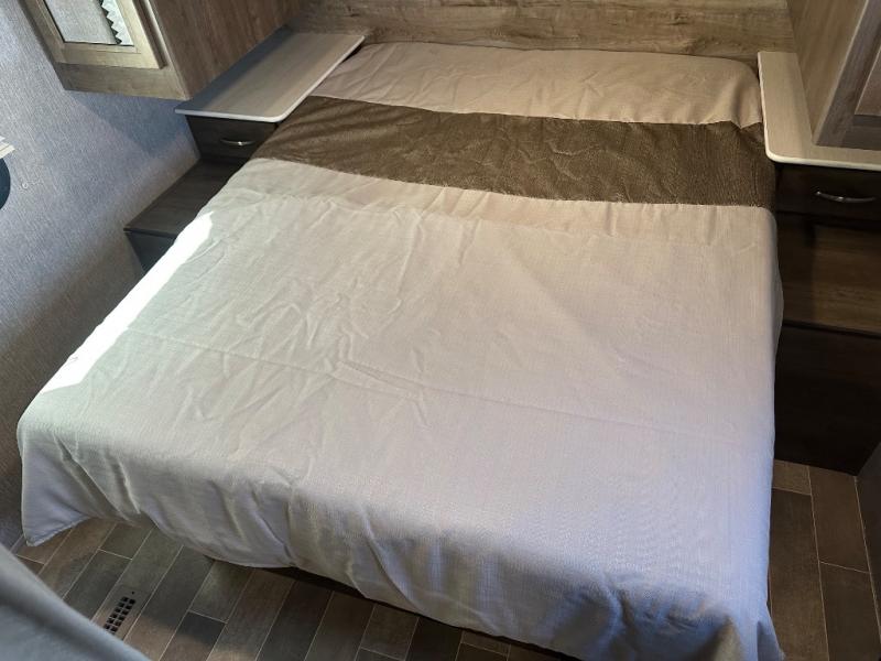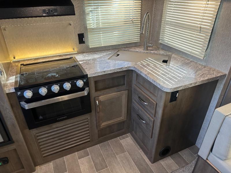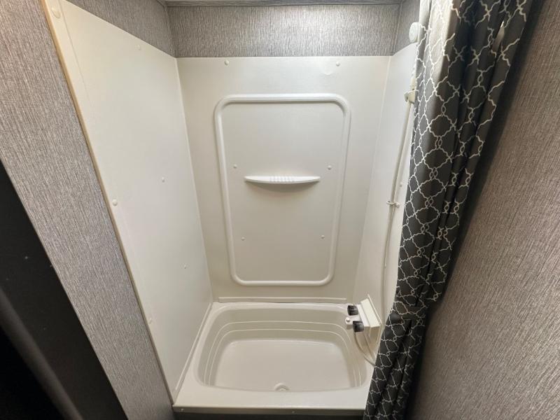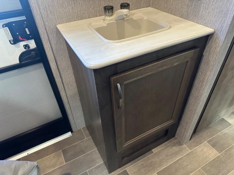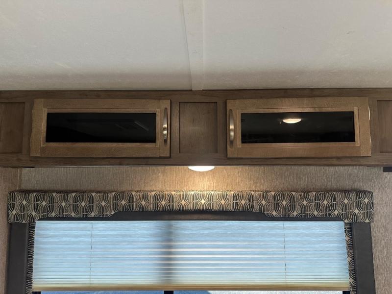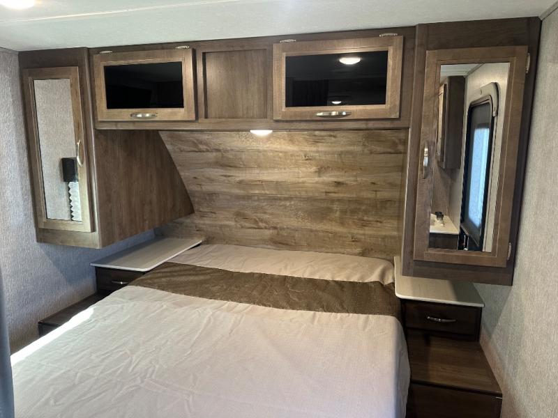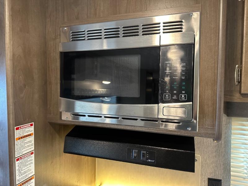 For a fun weekend at the lake, choose this travel trailer that will fit your family perfectly. You will enjoy a queen Rest Easy mattress at the front of the trailer, while the kids can fold down the sofa and dinette for extra sleeping space, allowing this unit to sleep six people each night. The rear kitchen with a three burner range and plenty of counter space provides all you need to prepare your family breakfast before you start your day. This unit includes two entry/exit doors so you can easily get in and back out to where the fun is. Bring along the fishing and hiking gear because this model includes a pass through storage where you can store it all!