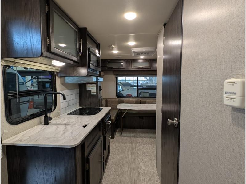 It's time to rethink your camping experience with this Kodiak Cub. If you are tired of waking up to a wet sleeping bag or an aching back, then you will love spending your evenings sleeping on the queen bed or the U-shaped dinette. All of that sleeping space means that this trailer has the capacity to sleep four people each time you travel. The full bathroom is a wonderful amenity to have when you need to clean up from a long day of hiking or fishing. And the full kitchen is exactly what you need to feed everyone's hungry bellies with a warm and hearty dinner cooked on the two burner range or in the microwave. Just imagine you and your family enjoying the great outdoors with this travel trailer steps away!