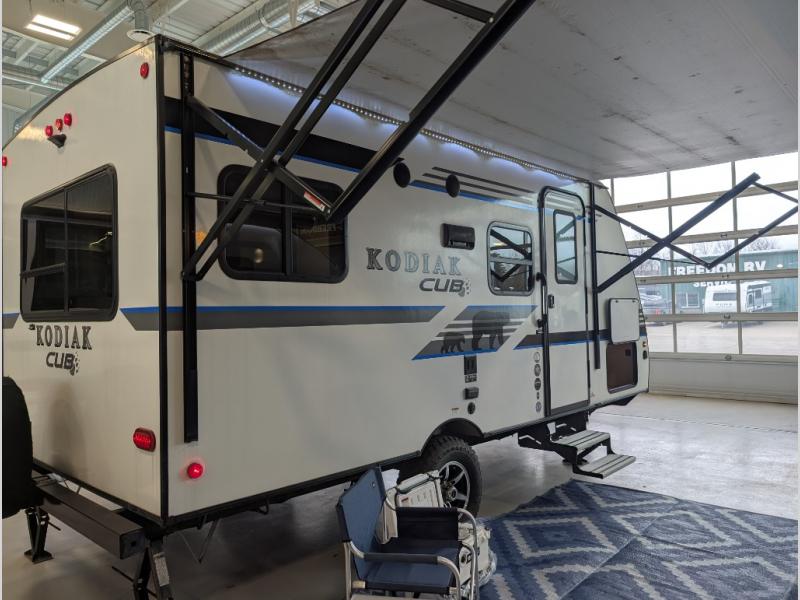 With any Kodiak Cub unit you will appreciate the modern conveniences and features that have been included, such as LED lights over the stabilizer jacks, hybrid aluminum steps, and a power awning with LED lights for an outside living area even at night. Your camping season can be extended thanks to the heated and enclosed underbelly. Inside, the stainless steel appliances and the subway tile backsplash offer style while camping. You can expect to travel with a greater peace of mind in a Kodiak Cub because of the extra layer of protection that the Dutchmen RV 3-year limited structural warranty offers. Choose your favorite layout today!