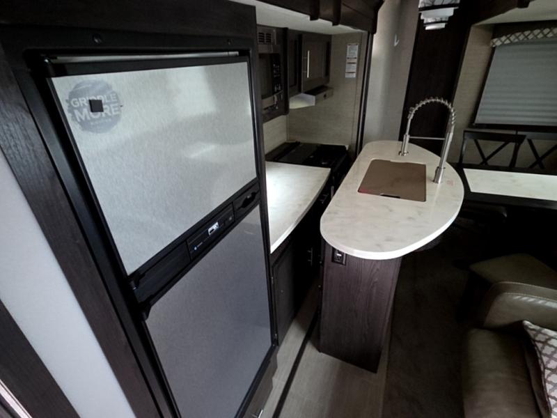 This Kodiak Ultimate travel trailer features absolutely everything you could need or want in an RV. Because the bathroom is located in the rear of this trailer, it gives you more space and privacy as you get ready for the day, and the front private bedroom also gives you a secluded area so that you can completely relax each evening. You will love spending your afternoons in the kitchen because the two opposing slides give this area plenty of room for you to prepare meals on the kitchen island, and the skylight that is located above the island will bring in extra rays of sun that will make the central living area feel even more spacious.