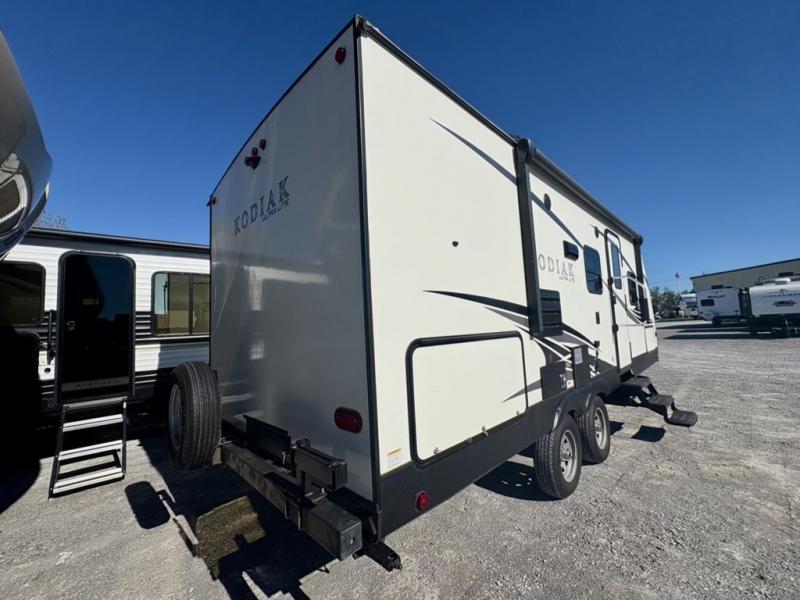 If the great outdoors is calling your name, this Kodiak Ultra-Lite travel trailer is ready for the adventure. If you enjoy the option of being able to cook in the fresh air, then you will appreciate the inclusion of the outdoor kitchen, and whether you're dining together outside, or inside on the U-shaped dinette, you will be making memories to last a lifetime. The rear full bathroom allows you to get cleaned up in a hot shower after a long day of hiking, swimming, or biking, and the private bedroom gives you a chance to relax from all of the day's exciting activities. Take a look today!