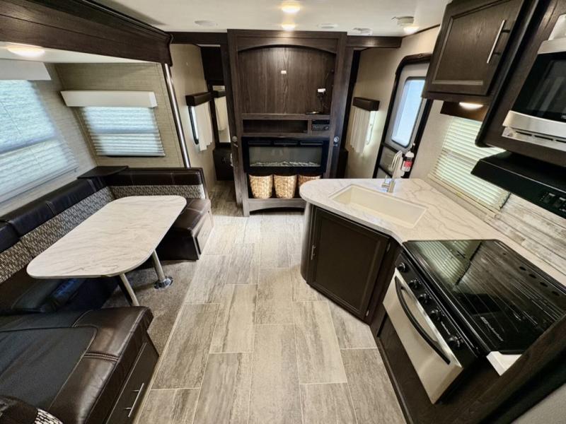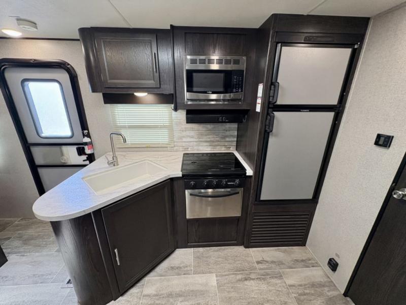 With any Dutchmen Kodiak Ultra-Lite travel trailer you can enjoy four seasons of camping thanks to the heated and enclosed underbelly and the easy-to-tow Bear Cage aluminum frame construction. Two exterior features that you will certainly appreciate are the pass-through storage compartment with LED lights for stowing away your larger outdoor gear and the electric awning with LED lighting that provides protection from the elements during the day or night. The Kodiak Ultra-Lite comes with stainless steel appliances, residential furniture, as well as spacious interior storage, making it a wonderful choice for any camping family.