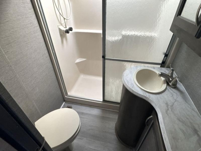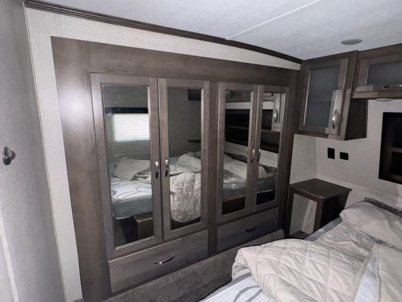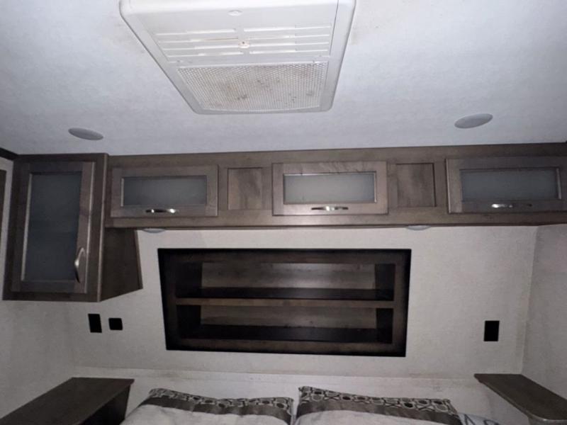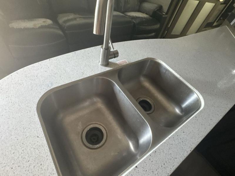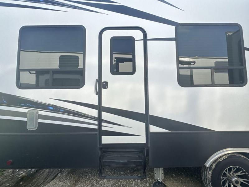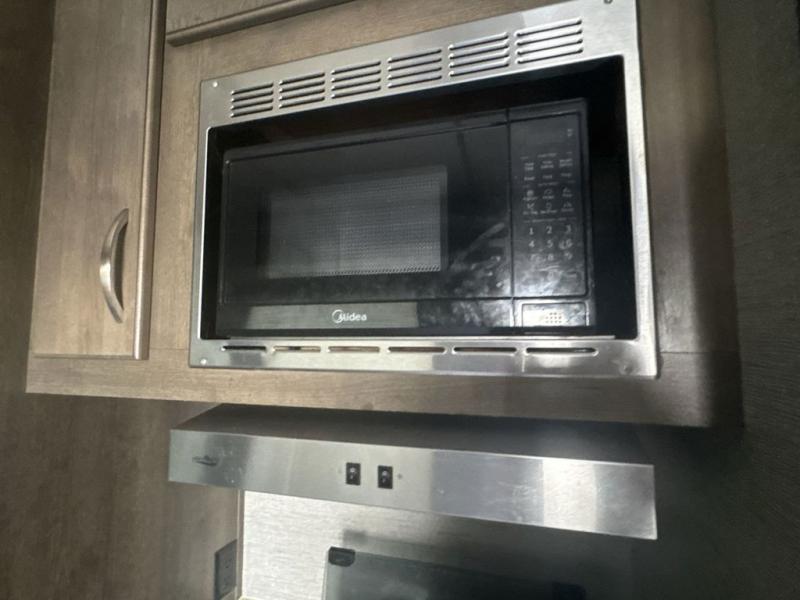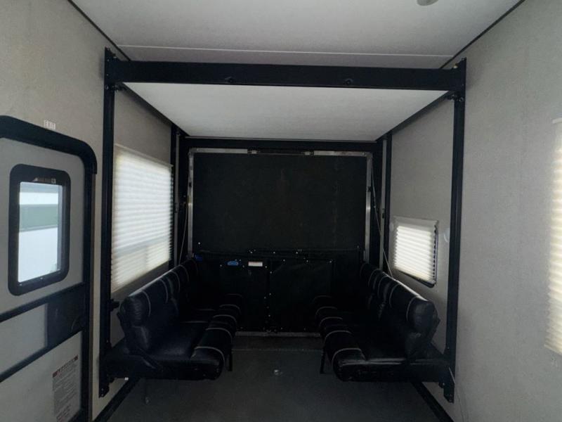 If you are looking for an exceptional unit that will make every getaway enjoyable, look no further than this Voltage Triton toy hauler! The three slides are what make this unit spacious and accommodating enough to fit a full and half bathroom inside so that no one will have to wait all morning to use the restroom, and because this unit can sleep nine people, it is a huge asset for those who travel with large groups. The 15' separate garage area is not only perfect for storing your favorite toys while you travel, but it is also the perfect lounging and sleeping area once you've set up camp because of its twin-size loft, electric bunk, and convertible sofas.