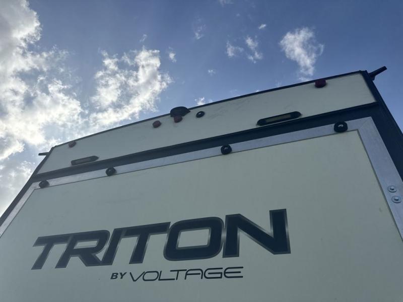 With any Voltage Triton toy hauler by Dutchmen RV, you will enjoy the luxurious interior, as well as the fabulous garage features that include a spring assist ramp door, a 30 gallon fuel station to keep your toys fueled all weekend long, Tuff Ply flooring for durability, and 2,500 lb tie downs to secure your toys while on the go. Inside each model you will find an LCD HDTV, upgraded residential furniture, solid surface countertops, and a stainless steel kitchen sink. It's time to stop dreaming about adventure and luxury and start living it!