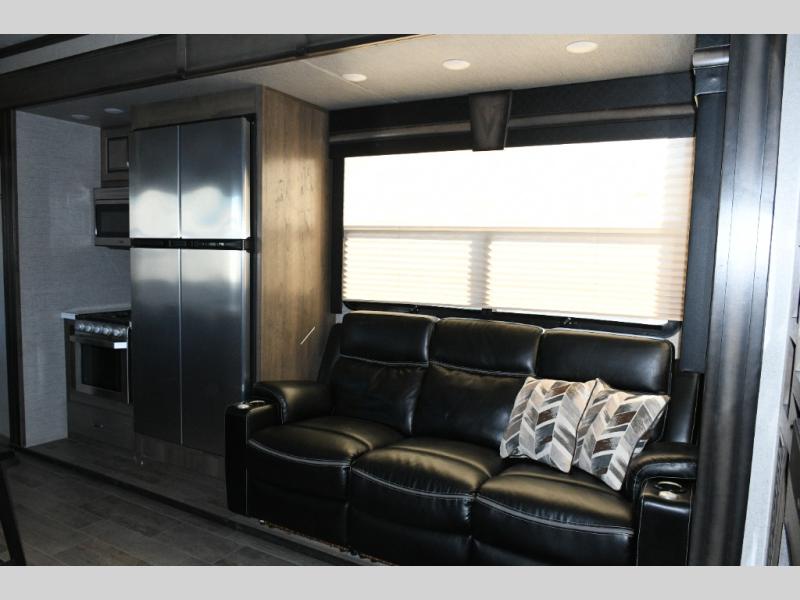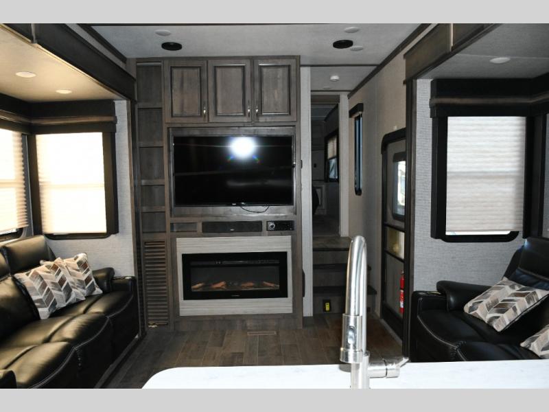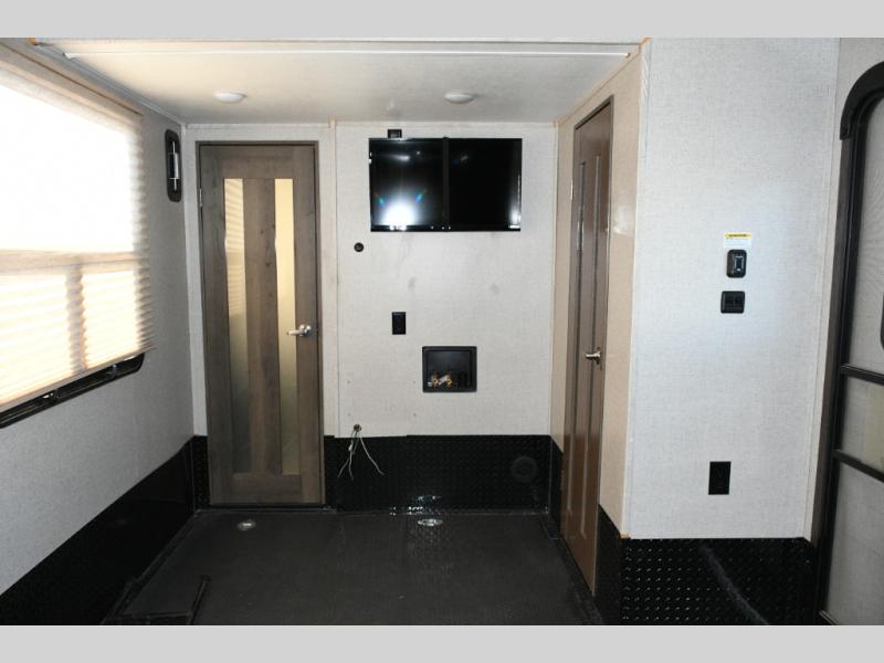 The Voltage 4115 offers flexible layouts that support both indoor relaxation and outdoor fun. The garage doubles as a private retreat or entertainment space, while the loft, Happi-Jack bunk, and main living areas provide plenty of sleeping options. Whether it’s movie night inside, a barbecue under the awning, or loading up for a day of trail riding, this toy hauler makes every adventure seamless and enjoyable.