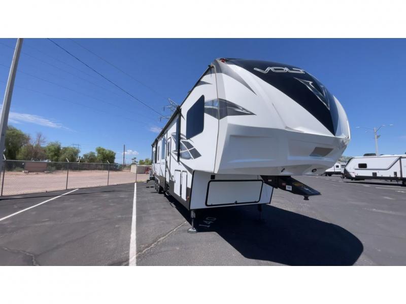 Even though the Dutchmen Voltage is the most popular fifth wheel toy hauler in its class, you don't have to own toys to want or own any one of these units. These haulers are so versatile that just having the added garage space allows you so many more camping options. Just think of how much gear you can take along for your favorite activities and outdoor games. Each rear ramp can be positioned horizontally for you to add optional awnings, screen rooms, and side rails to create a rear patio, or even a set of steps to the ground. On the inside, you will find that Voltage offers higher ceilings for a spacious open feel, residential furnishings, a gourmet kitchen with solid surface countertops, and hardwood cabinetry as well. And, with the 30 gallon gasoline fuel station, standard on every model, you can be sure that you can indeed bring all of the toys for the weekend and beyond! So, for camping that requires your favorite outdoor toys, or even a backyard patio, choose any Dutchmen Voltage FW toy hauler and begin planning your next family adventure!