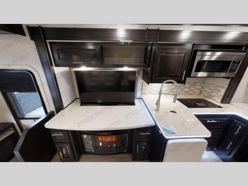Get ready to enjoy your next camping trip with this Dynamax DynaQuest super C motor home. The dual opposing slides in the living and kitchen area provide your crew with more interior space. You can easily entertain a guest or two and at night the dinette and hide-a-bed easily convert into extra sleeping space. Near the entry door there is a desk where you can work on your computer, plus there is also a fireplace and a 50" TV. The rear bedroom features a king bed and before you turn in for the night you can enjoy watching a show on the 32" TV. The walk-through bath has a private toilet area plus a closet that has been prepped for an optional washer and dryer. This unit also includes a 32" exterior entertainment center, so grab the popcorn and your lawn chairs for a late-night movie outside!