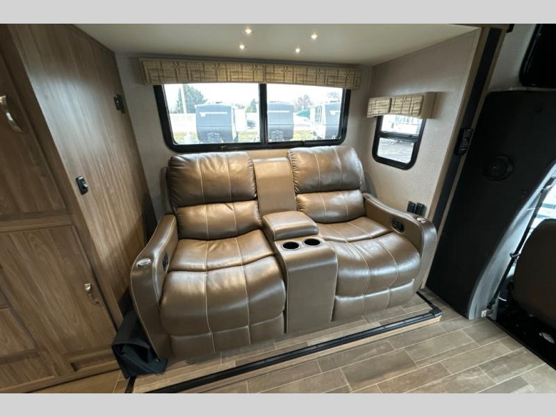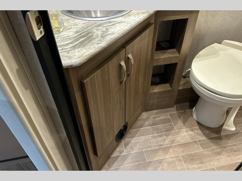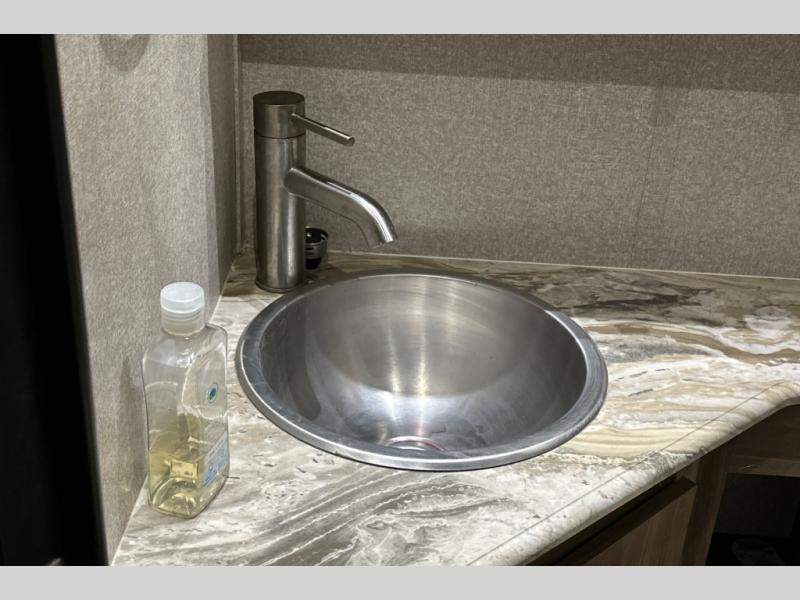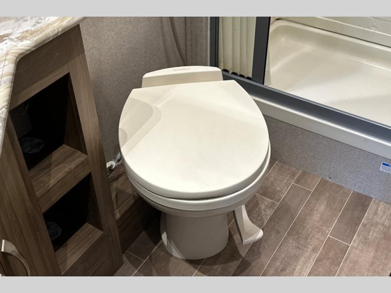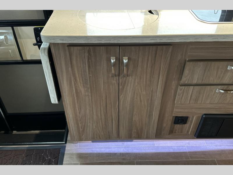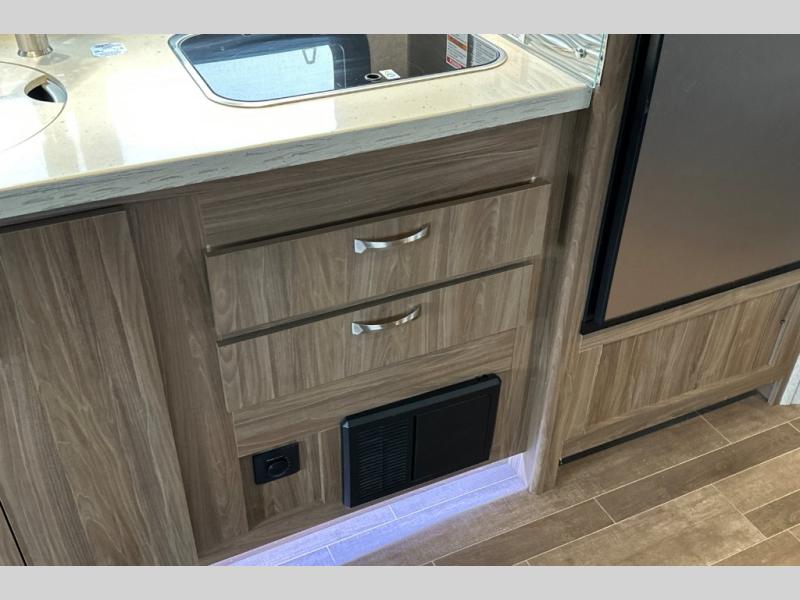 The dark tinted, frameless windows, full-body paint, and contemporary interior design all play a part in creating an impressive coach such as the Dynamax isata 3 motorhome. You will love the beautiful interiors that feature family-friendly and functional living spaces, and the LED flush-mount lighting on the ceiling will illuminate the entire coach and accentuate even the smallest of details that have been incorporated into these models, like the premium vinyl flooring and Italian ultralight poplar cabinetry. The water filtration system that has been incorporated into the isata 3 will ensure that you are always getting the freshest supply of water for however you intend to use it, and you will enjoy using the exterior portion of the isata 3 for all of your late-night campfires because of the exterior speakers, electric awning with LED lights, and exterior shower.