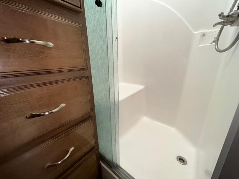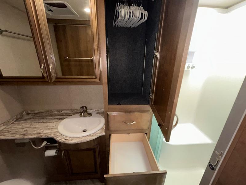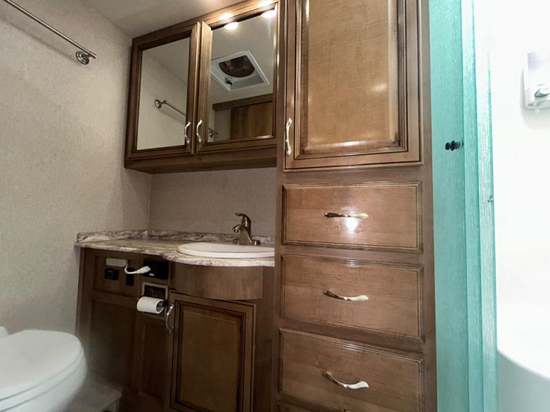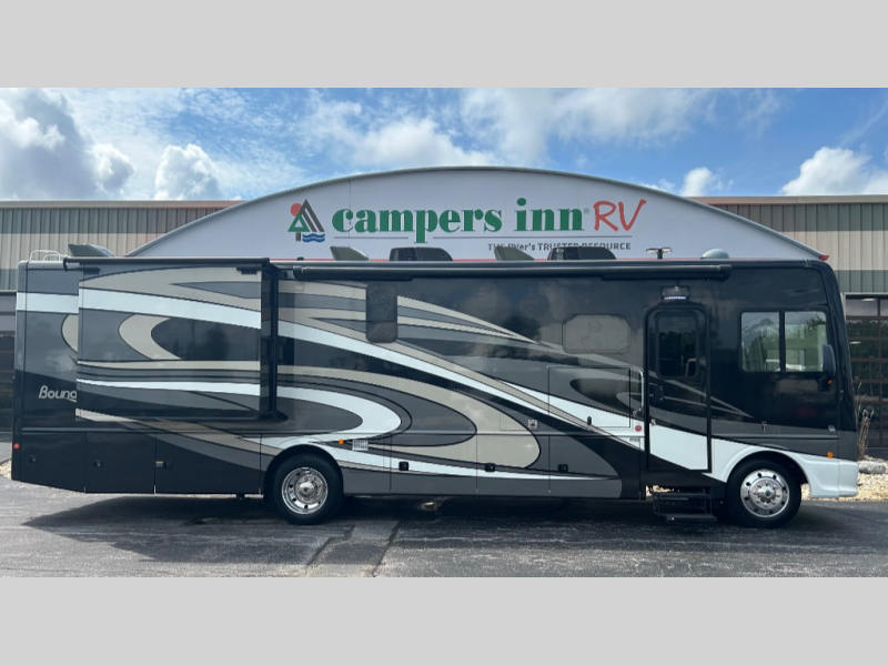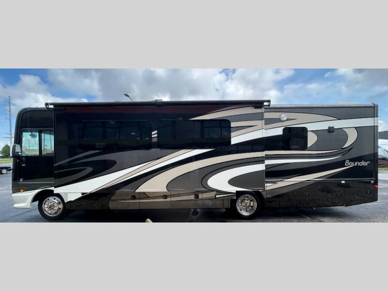 For a fun trip across the country or just to your closest state park, choose this Bounder class A gas motorhome. You can comfortably sleep six in this unit, so pack up the kids and hit the road! This unit includes an expandable L-sofa the kids will love to sit on as they watch their favorite movie on the 40" TV. In the evening, everyone can snuggle up and enjoy the fireplace and talk about the day. Two slide outs provide extra interior space, so let the kids play a game on the floor. The rear bath gives everyone a little extra privacy, plus there is a half bath for your convenience. This motorhome also includes a residential refrigerator with an ice maker that mom is sure to love, plus a pantry the kids can hide their snacks in.