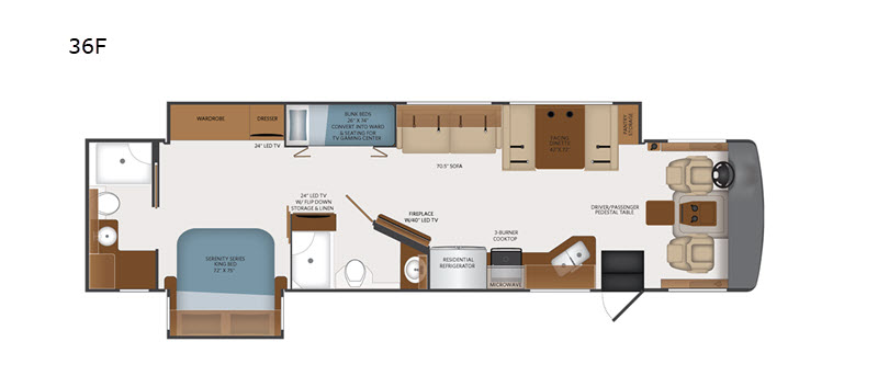 | TV Info | LR, 40" BR, 24" TV, Bunks, 24" TV, Ext. 40" TV |