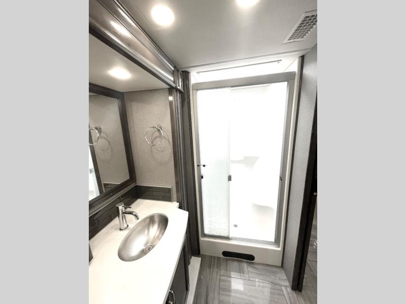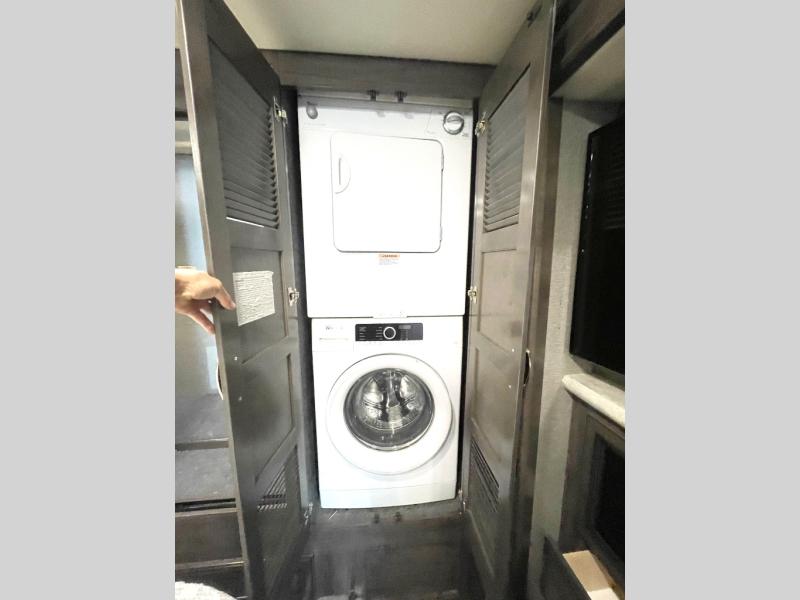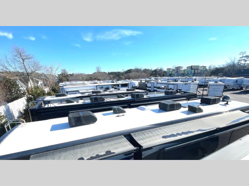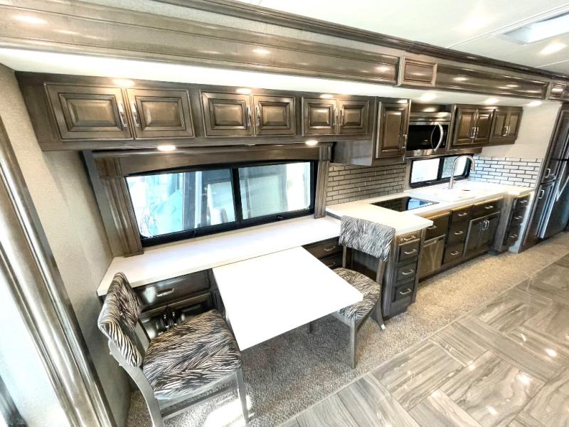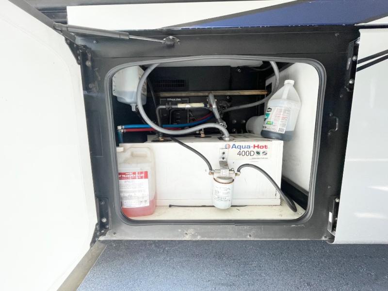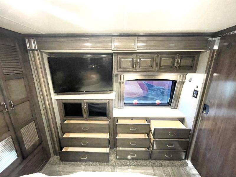 When the great outdoors or road trip beckons, answer the call with this diesel motorhome. There are plenty of exceptional features throughout this coach, such as a Aqua Hot 400 water heater for a long warm shower, and with four slides you have plenty of room inside to rest and recharge. In the evenings, imagine relaxing on the L-shaped sofa and enjoying the 49” LED TV for entertainment, and when it's time for bed, you can easily convert the sofa into additional sleeping space for your guests. You can probably see yourself sleeping in the master suite on an Encore Series king size bed with plenty of storage for all your clothes including a dresser and a full-length wardrobe. Outside, you will find a 48" TV and electric awning with LED lighting and wind sensor retract if you want to enjoy some fresh air while watching your shows.