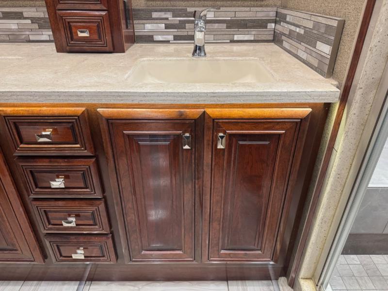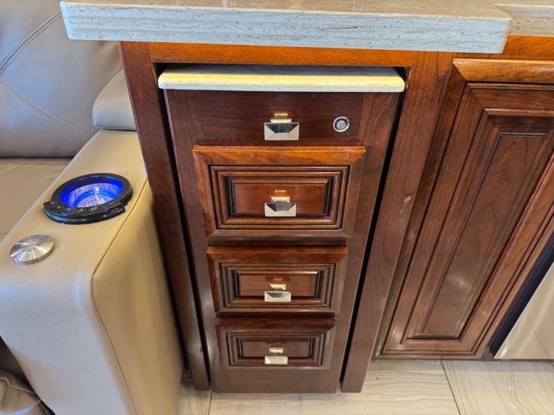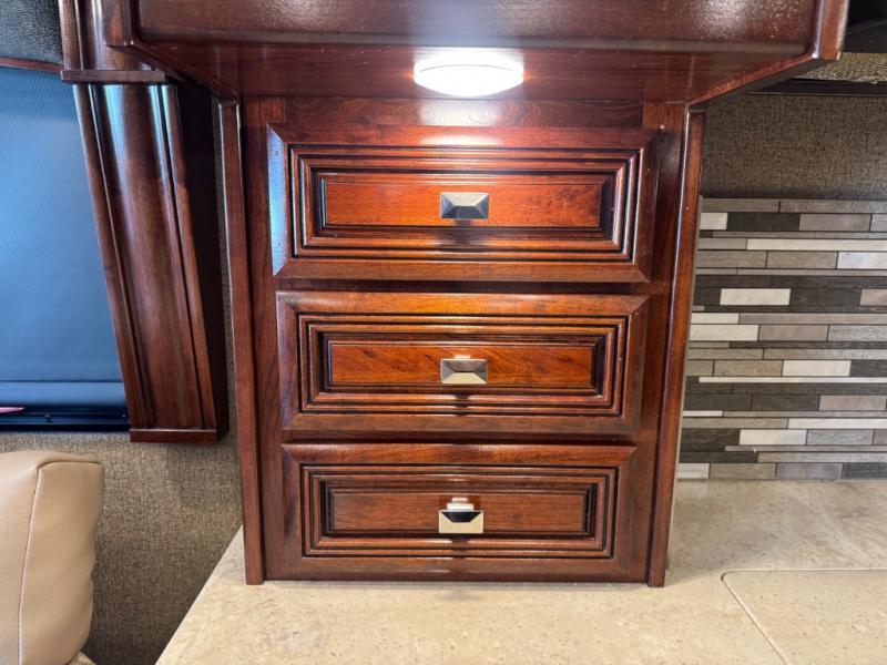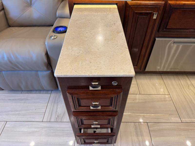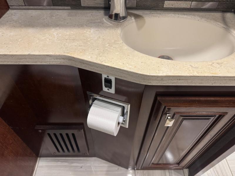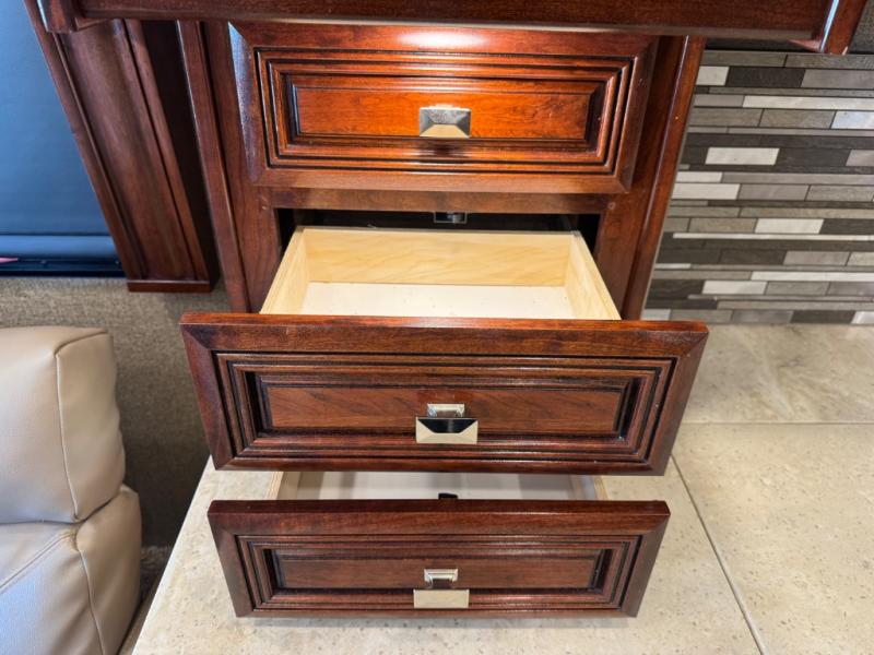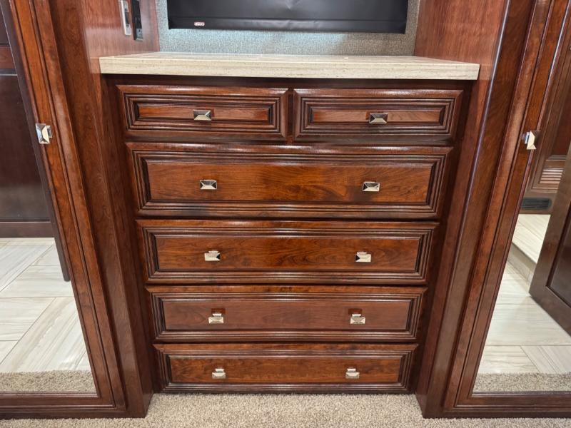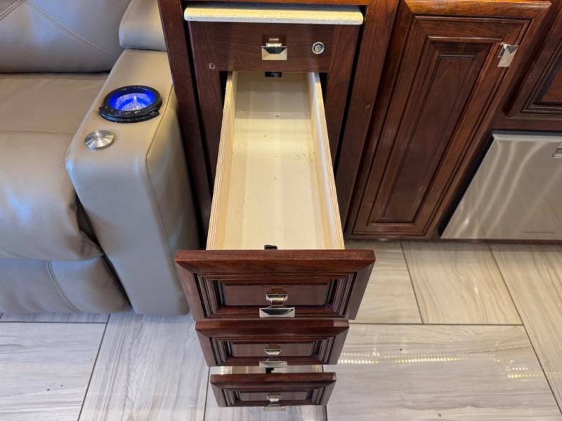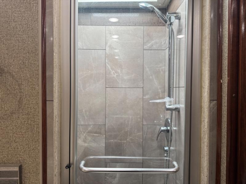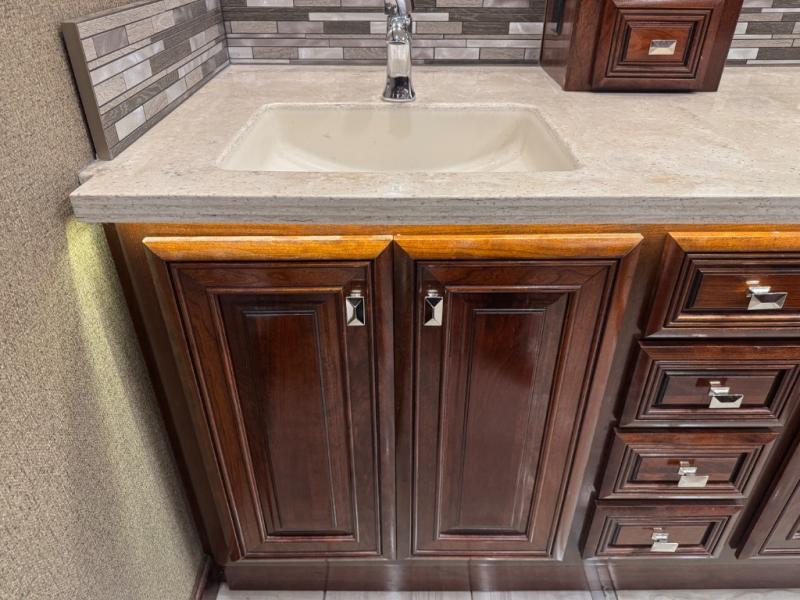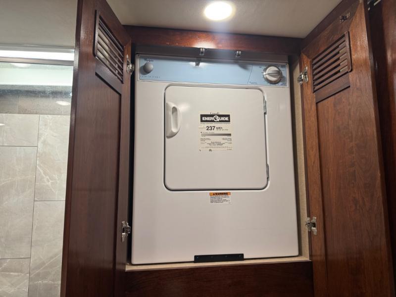 Fleetwood Discovery LXE 40M class A diesel coach highlights: Bath and a Half Double Sink Vanity Sofa Sleeper Fireplace Dishwasher Exterior 48" TV You are sure to love this diesel coach with modern style and many conveniences you want and needy while away from home! Just imagine having your own full bathroom with two sinks and a seated shower, plus a stackable washer and dryer. You can offer your guests the half bath when they are visiting which is mid-coach. You can also provide enough seating with the swivel captain's chairs, a booth dinette, a sofa sleeper and an extra sofa with drawers. Everyone will enjoy the fireplace and the 55" pop-up LED TV when wanting to catch the big game. Or you can take the party outside to watch the 48" LED TV under the electric awning. You will find more features such as dishwasher, hardwood ceiling feature trim with lighting, a porcelain maserator toilet, and technology throughout! With any Fleetwood Discovery LXE class A diesel coach you will enjoy the journey and the destination. Each model has a Power Bridge chassis on the Freightliner XCM Series with a Cummins ISL 9L diesel engine, plus luxury features and technology throughout. The driver will appreciate the 10.2" Magnadyne radio touch screen with Bluetooth, navigation, App store and Wifi, the 55-degree wheel cut, the 18" Smart steering wheel with leather wrapped rim, and the 7" backup color monitor. You will love the living room floor heat on those cooler evenings, the feel and look of the residential style furniture and the polished porcelain tile flooring throughout, plus there is many more upgrades that will allow you to explore in comfort and modern style!