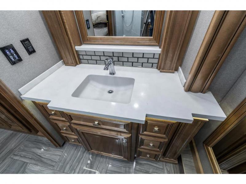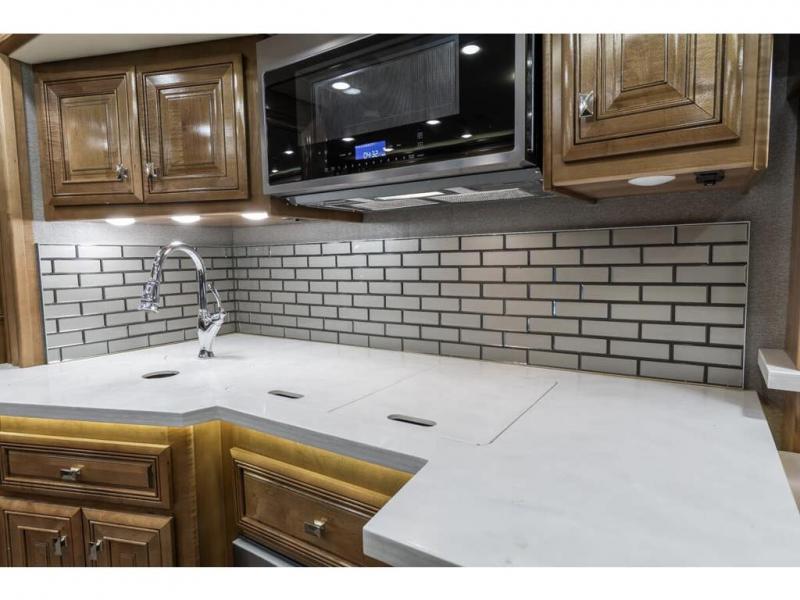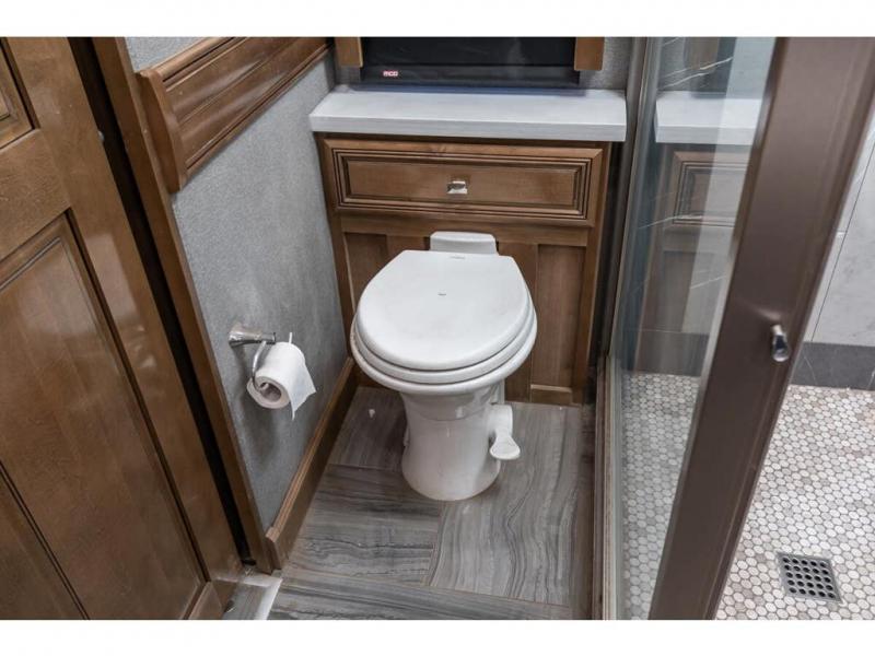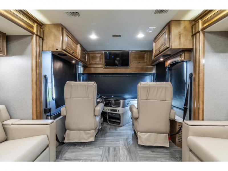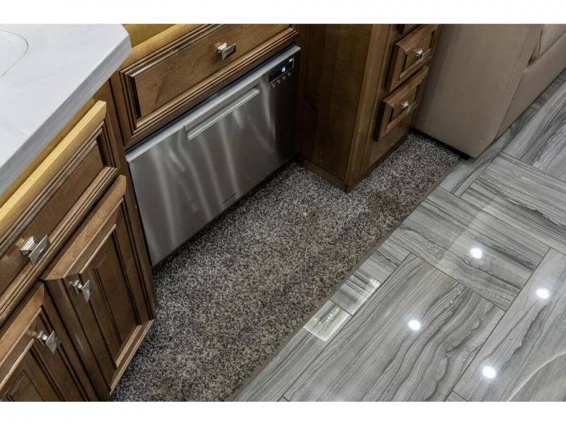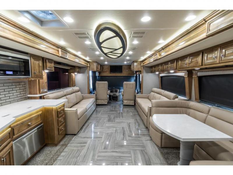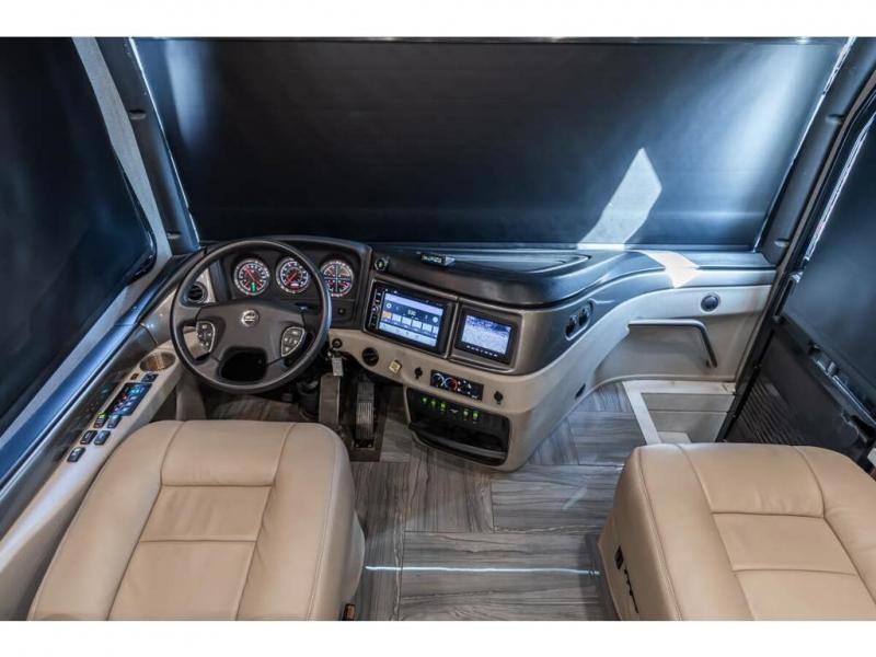 With any Fleetwood Discovery LXE class A diesel coach you will enjoy the journey and the destination. Each model has a Power Bridge chassis on the Freightliner XCM Series with a Cummins ISL 9L diesel engine, plus luxury features and technology throughout. The driver will appreciate the 10.2" Magnadyne radio touch screen with Bluetooth, navigation, App store and Wifi, the 55 degree wheel cut, the 18" Smart steering wheel with leather wrapped rim, and the 7" backup color monitor. You will love the living room floor heat on those cooler evenings, the feel and look of the residential style furniture and the polished porcelain tile flooring throughout, plus there is many more upgrades that will allow you to explore in comfort and modern style!