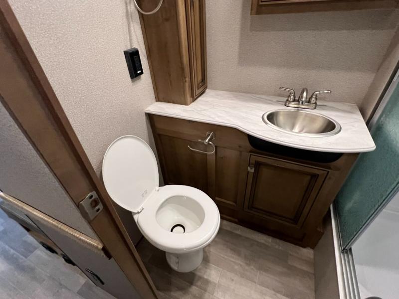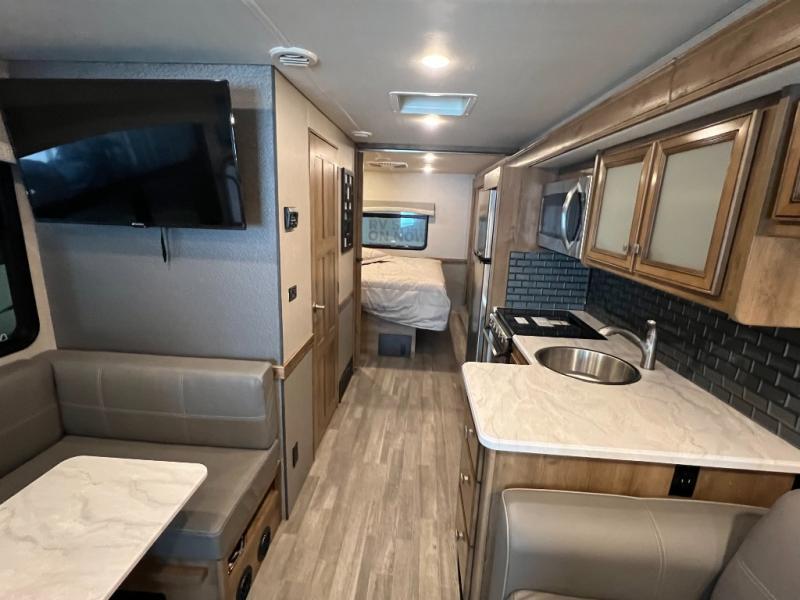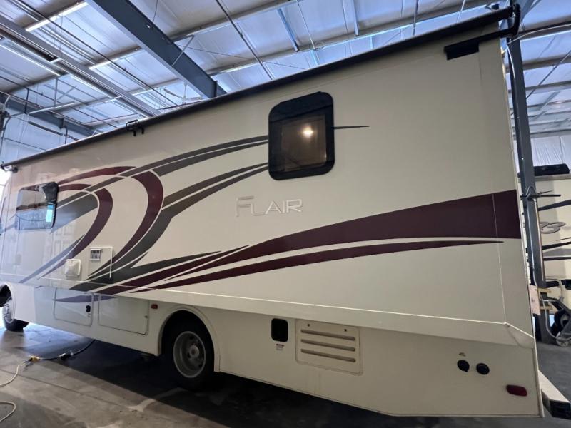 You will love the convenience and the functionality of the Fleetwood Flair. Each model includes a Hide-A-Loft drop down queen bed with a 600 lb. capacity, a residential sofa, and lino flooring. An over the range microwave, kitchen backsplash, and a residential single handle faucet with a pullout sprayer come standard in these motorhomes. In each unit you will be pleased to find a Bluetooth stereo system in the bedroom plus a USB port to charge your devices. Clean up after a day of hiking with family and friends with an exterior shower provided with each motorhome, plus you'll find a pass through storage to hold your larger items. These units have also been constructed with four point fully automatic hydraulic leveling jacks, a full coverage heavy duty undercoating, and a quiet, ducted A/C system. Come treat yourself with one of these Flair motorhomes by Fleetwood RV, you won't regret it!