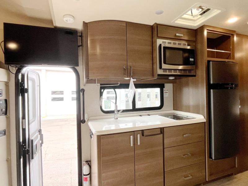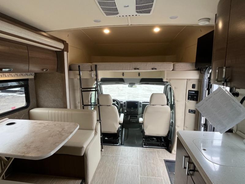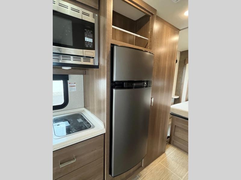 Travel to a different beat with the feature-packed Pulse Class C diesel motorhome from Fleetwood RV. Each unit is built on a Mercedes-Benz Sprinter chassis and is powered by a 3.0L 6-cylinder turbo-diesel engine. The compact size of the Pulse makes it easy to maneuver and park, but don't let its size fool you because these units feature all that you need to handle any family road trip in complete comfort and style. With the 15,000 BTU air conditioner that has been included in the Pulse, you can sleep peacefully and comfortably each night even during the middle of a summer meltdown, and the whole house water filtration will allow you to grab a glass of cool water no matter where you have chosen to camp out. Throughout the interior, you will appreciate the style that the stainless steel appliances add to the decor, and you will love the bright atmosphere at any time of the day with the LED lighting.