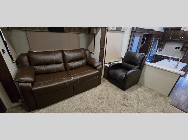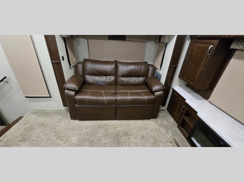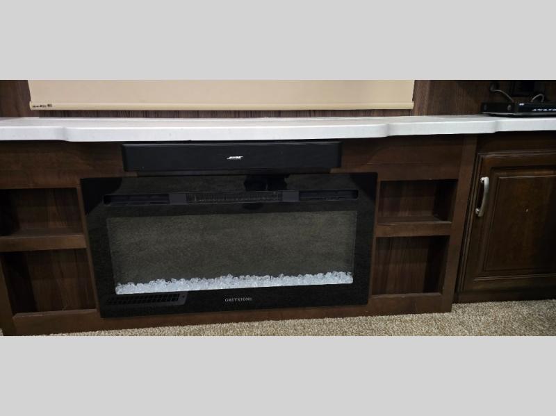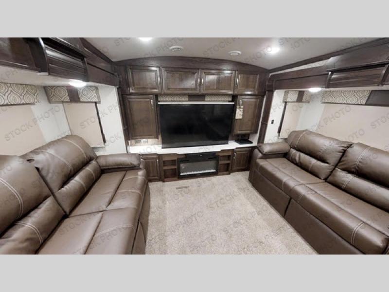 In any Cardinal Luxury fifth wheel you will find comfort and conveniences both inside and out as these units were built with your enjoyment in mind. Each unit features an all welded aluminum super structure frame and includes an Alpha Super Flex II TPO roof. Each Cardinal Luxury model also has a wide body construction along with three to five slides to provide you with maximum space inside for 100% enjoyment with your family and friends. You will love the cathedral ceilings for added interior height, plenty of closets to keep all of your clothing, and beautiful Shaw lino throughout. You will also appreciate the at-home touches inside that give each unit a luxurious feel like the crown molding ceiling and cabinet trim, an electric fireplace, and pendant lighting in the kitchen area. The outside of each coach also has a high end look with its premium high-gloss gel coat fiberglass that you have the option of choosing in one of four full body paint color schemes!