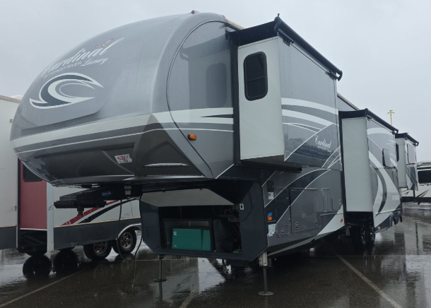 In any Cardinal Luxury fifth wheel you will find comfort and conveniences both inside and out as these units were built with your enjoyment in mind. Each unit features an all welded aluminum super structure frame and includes an Alpha Super Flex II TPO roof. Each Cardinal Luxury model also has a wide body construction along with three to five slides to provide you with maximum space inside for 100% enjoyment with your family and friends. You will love the cathedral ceilings for added interior height, plenty of closets to keep all of your clothing, and beautiful Shaw lino throughout. You will also appreciate the at-home touches inside that give each unit a luxurious feel like the crown molding ceiling and cabinet trim, an electric fireplace, and pendant lighting in the kitchen area. The outside of each coach also has a high end look with its premium high-gloss gel coat fiberglass that you have the option of choosing in one of four full body paint color schemes!