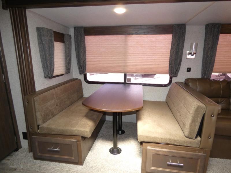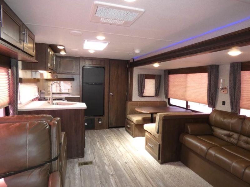 No matter which Cherokee model by Forest River you choose, you can rest assured knowing that each unit is built to provide you with great value, comfort, and style making it easy to get up and go as soon as the urge strikes. Each model features two-toned exterior metal and upgraded graphics, a one-piece rubber roof with 3/8" walkable roof decking, and a front stone guard for protection. Inside of each unit, you will enjoy comfortable seating and mocha-stained shaker-style cabinets.