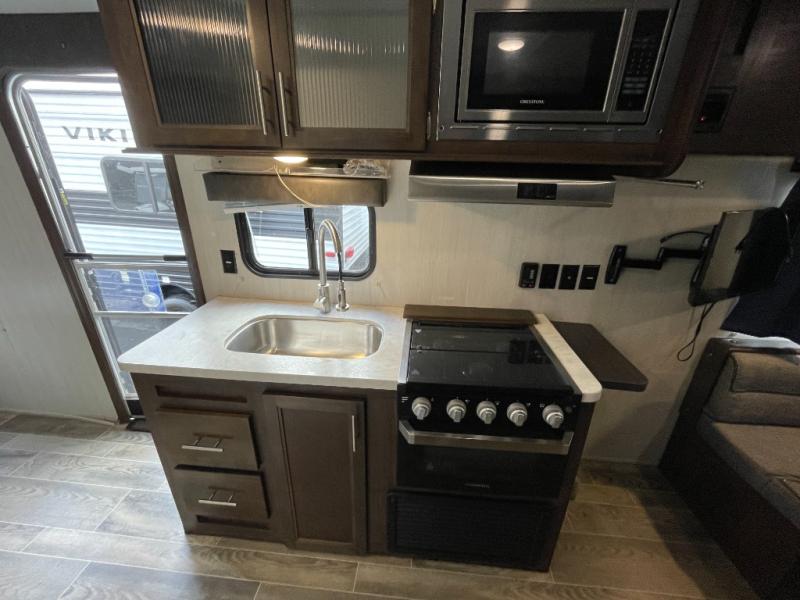 All Forest River Cherokee Grey Wolf models are quality built with distinct features and superior comfort in mind, and they are all set at an affordable price point. So, when you get the opportunity to escape the hustle and bustle of everyday life to enjoy all the beauty and wonder that an outdoor adventure holds, the Cherokee Grey Wolf is ready and waiting to help you relax and unwind. Each unit features an outdoor shower with hot and cold water for you to get cleaned up without tracking mud throughout after your adventurous hike, and with the RVQ quick connect, you can easily hook up a low-pressure grill to cook up your best burgers outdoors. Inside, you will enjoy the HDMI entertainment center, the LED lighting throughout, and a kitchen skylight with a shade, and if you get tired of being indoors during inclement weather, the outdoor power awning will provide protection.