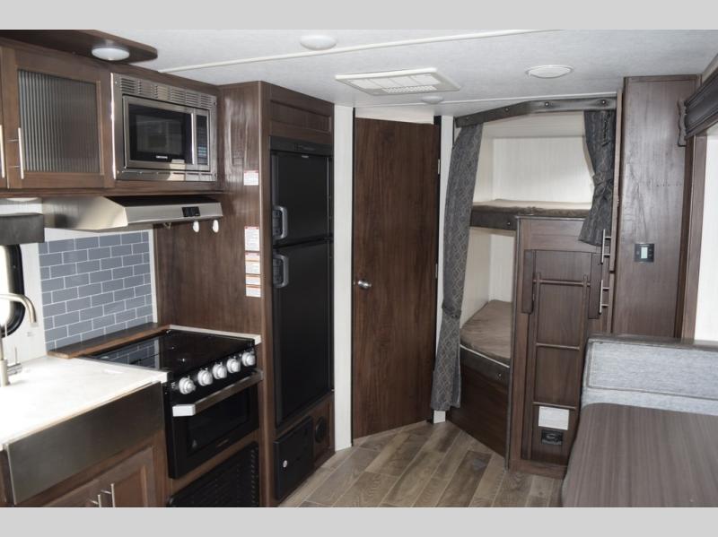 All Forest River Cherokee Grey Wolf models are quality built with distinct features and superior comfort in mind, and they are all set at an affordable price point. So, when you get the opportunity to escape the hustle and bustle of everyday life to enjoy all the beauty and wonder that an outdoor adventure holds, the Cherokee Grey Wolf is ready and waiting to help you relax and unwind. Each unit features an outdoor shower with hot and cold water for you to get cleaned up without tracking mud throughout after your adventurous hike, and with the RVQ quick connect, you can easily hook up a low-pressure grill to cook up your best burgers outdoors. Inside, you will enjoy the HDMI entertainment center, the LED lighting throughout, and a kitchen skylight with a shade, and if you get tired of being indoors during inclement weather, the outdoor power awning will provide protection.