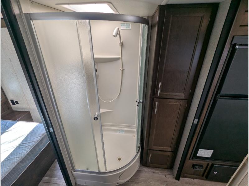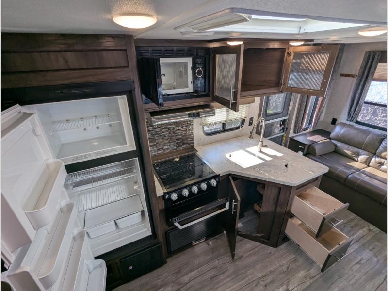 All Forest River Cherokee Grey Wolf models are quality built with distinct features and superior comfort in mind, and they are all set at an affordable price point. So, when you get the opportunity to escape the hustle and bustle of everyday life to enjoy all the beauty and wonder that an outdoor adventure holds, the Cherokee Grey Wolf is ready and waiting to help you relax and unwind. Each unit features an outdoor shower with hot and cold water for you to get cleaned up without tracking mud throughout after your adventurous hike, and with the RVQ quick connect, you can easily hook up a low-pressure grill to cook up your best burgers outdoors. Inside, you will enjoy the HDMI entertainment center, the LED lighting throughout, and a kitchen skylight with a shade, and if you get tired of being indoors during inclement weather, the outdoor power awning will provide protection.