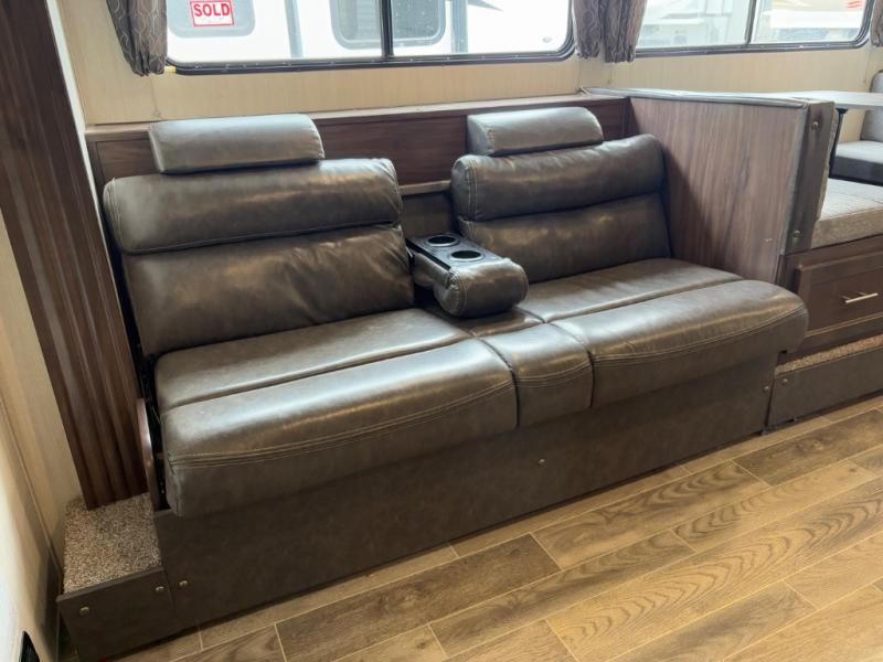 - Sofa and booth dinette convert into additional sleeping spaces for up to 10 people