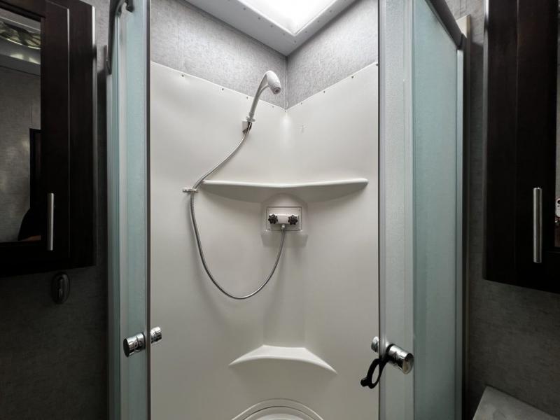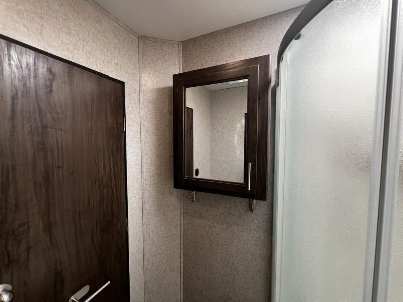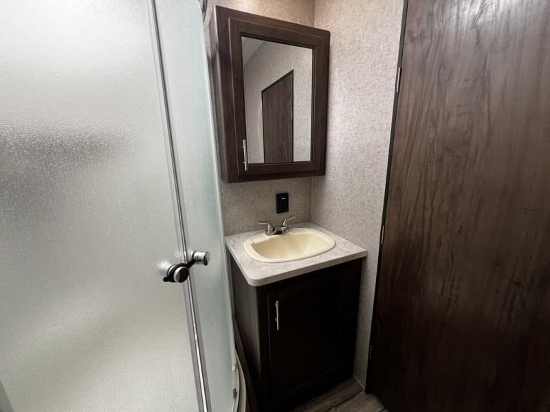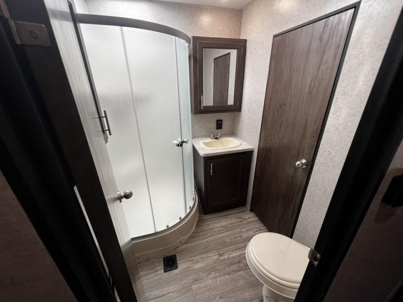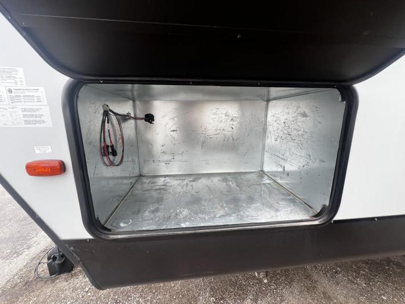 With any Cherokee Wolf Pack toy hauler, it is easy to keep the outdoor fun going all weekend long! There is plenty of room for a few dirt bikes, a four wheeler, or an ATV, and you can clean up from your excursions before coming indoors with the outside shower. Inside you will find comfortable conveniences, such as tongue and groove plywood floors, real wood doors and drawers, wood blinds, and an 8 cubic foot refrigerator. You will also appreciate having a 35,000 BTU furnace to keep the interior warm while you sleep at night.