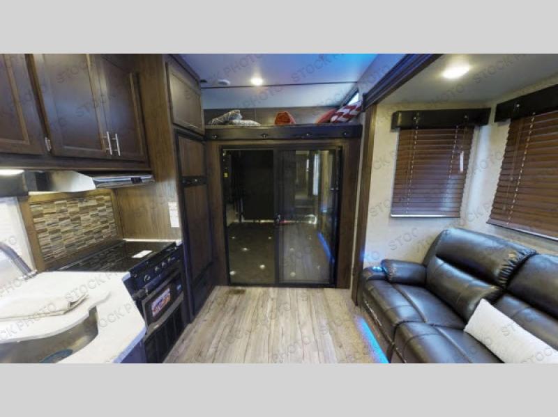 Get ready for your next camping trip that also includes spending time outside riding the trails with your off-road toys when you choose to camp with this Cherokee Wolf Pack toy hauler. For your riding gear, you will appreciate the 13' garage, the 8' x 8' rear ramp door, and the outside fuel station. There are plenty of sleeping options in this model which include the Happijack power bunk, the two sofa beds, the queen loft, the U-shaped dinette, and the front master bed which also has storage below. With the 21' power awning you can plan to spend more time outside visiting with your family or relaxing in your camp chair.