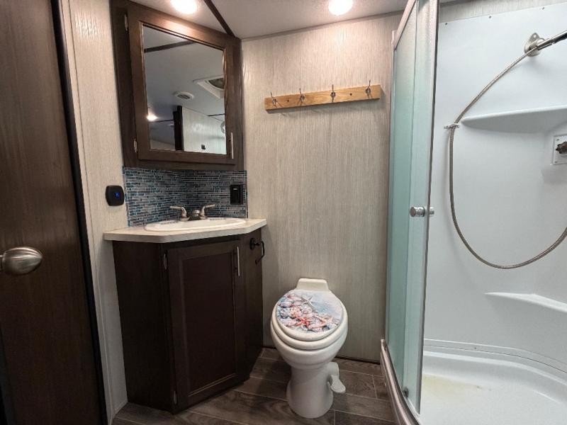 Spend your evenings under the 21' power awning while your extra camping gear stays organized in the pass-through storage compartment. An exterior shower lets you clean up before heading inside, keeping the RV fresh and tidy throughout your stay.