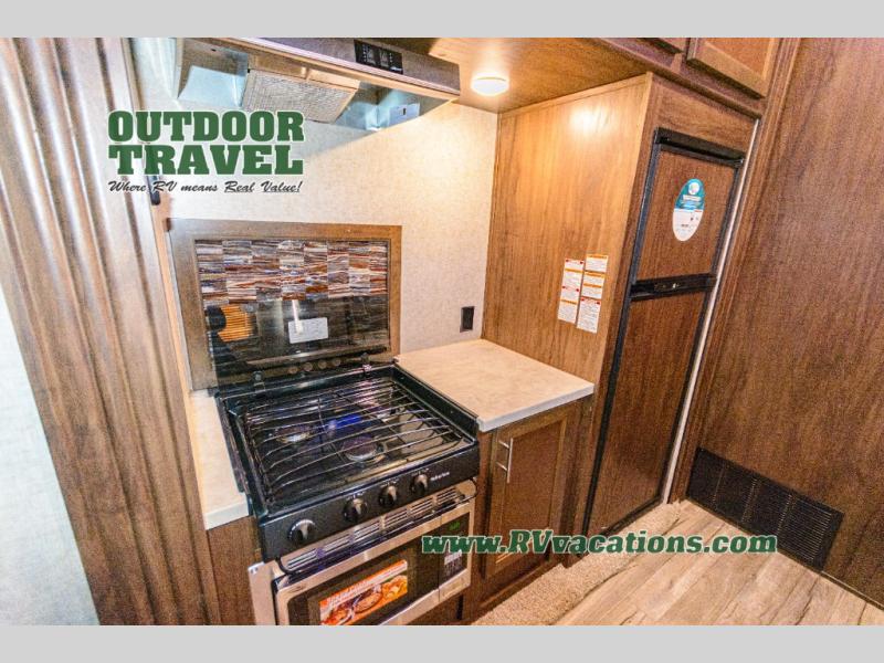 With any Cherokee Wolf Pack toy hauler, it is easy to keep the outdoor fun going all weekend long! There is plenty of room for a few dirt bikes, a four wheeler, or an ATV, and you can clean up from your excursions before coming indoors with the outside shower. Inside you will find comfortable conveniences, such as tongue and groove plywood floors, real wood doors and drawers, wood blinds, and an 8 cubic foot refrigerator. You will also appreciate having a 35,000 BTU furnace to keep the interior warm while you sleep at night.